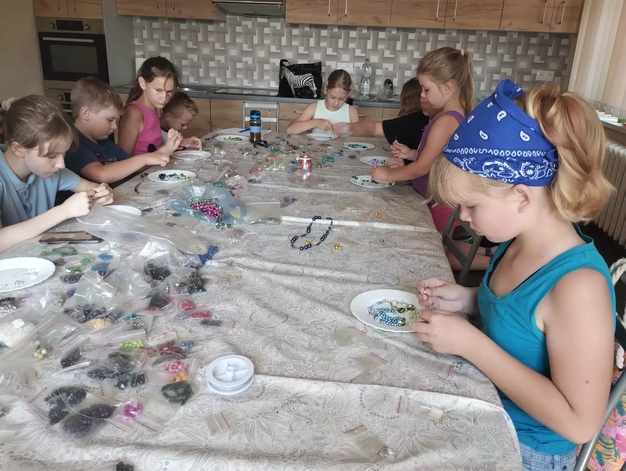 W ostatnią środę, 16 sierpnia, dzieci tworzyły swoją autorską biżuterię z kolorowych koralików.