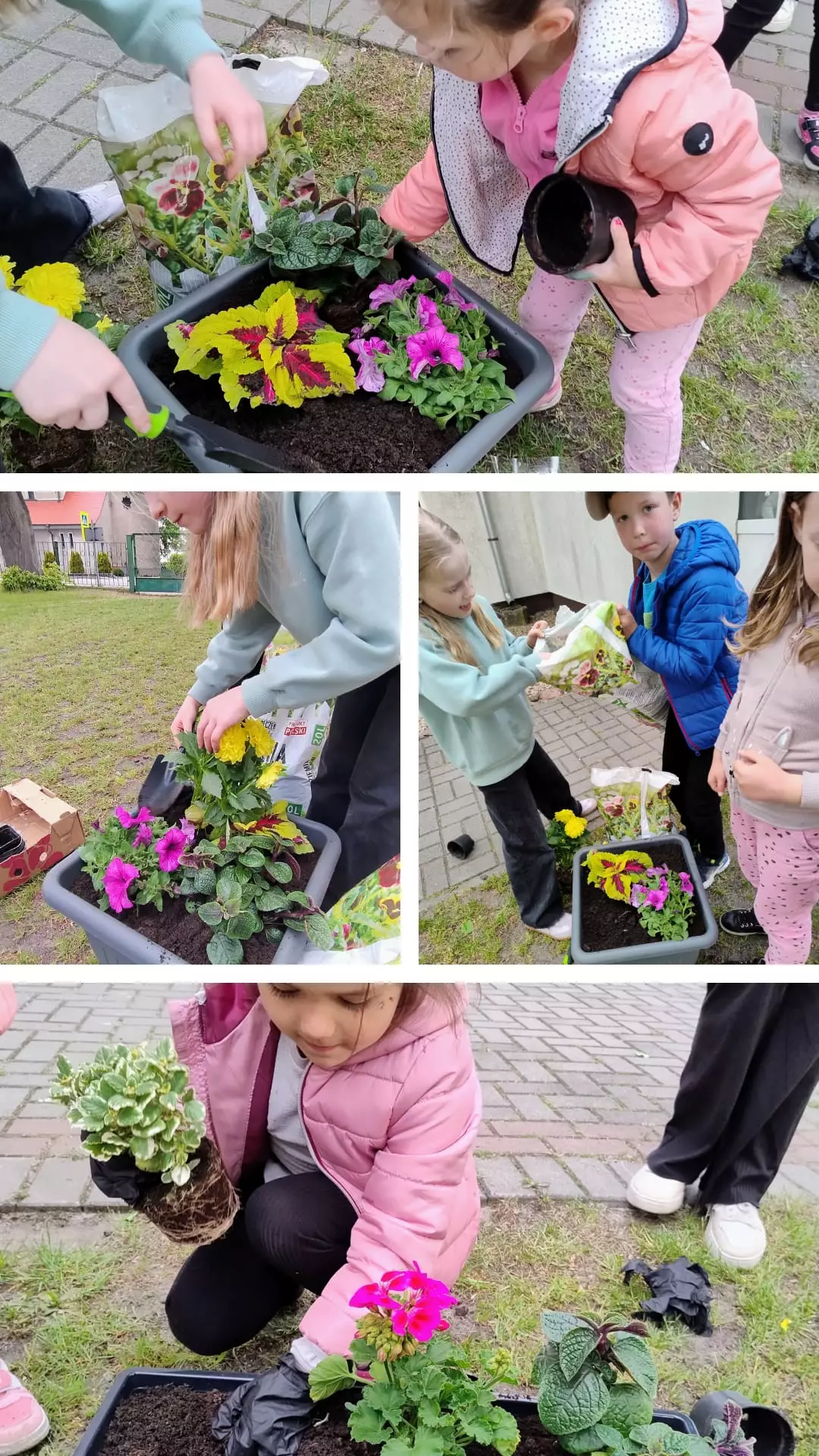 Kolaż zdjęć z zajęć bibliotecznych.Dzieci stoją przed biblioteką na ziemi leżą pomalowane kamienie i drewniana doniczka z bratkami.Kolaż zdjęć z zajęć bibliotecznych.Dzieci na zajęciach malują kamienie i napisz przed bibliotekę na kawałku drewna.Kolaż zdjęć z zajęć bibliotecznych.Kolaż zdjęć z zajęć bibliotecznych.Kolaż zdjęć z zajęć bibliotecznych.Kolaż zdjęć z zajęć bibliotecznych.