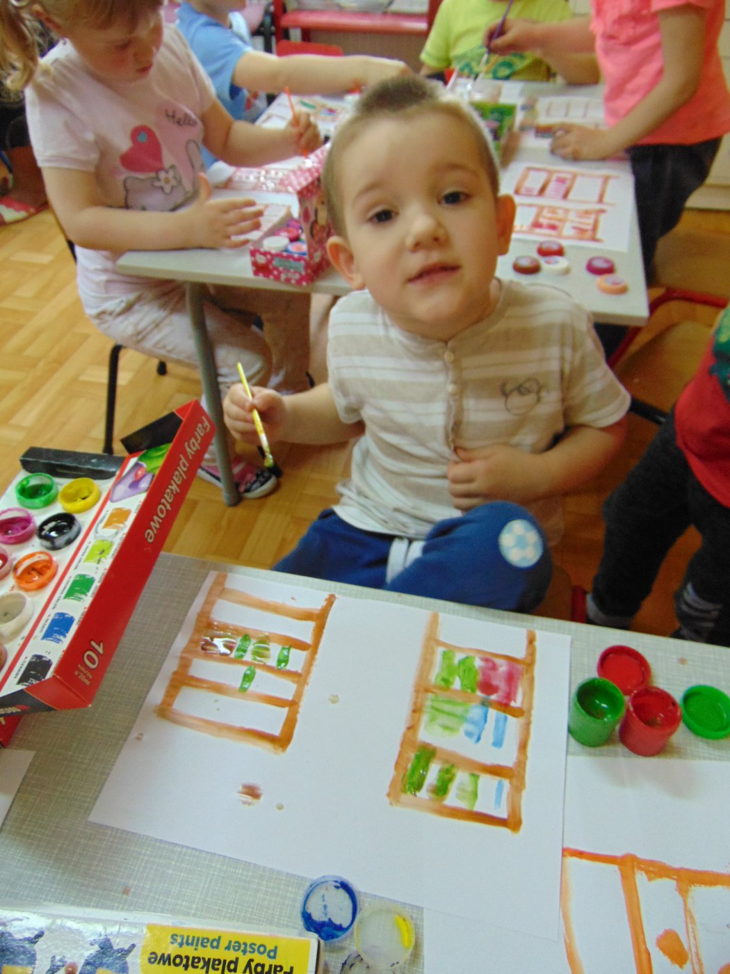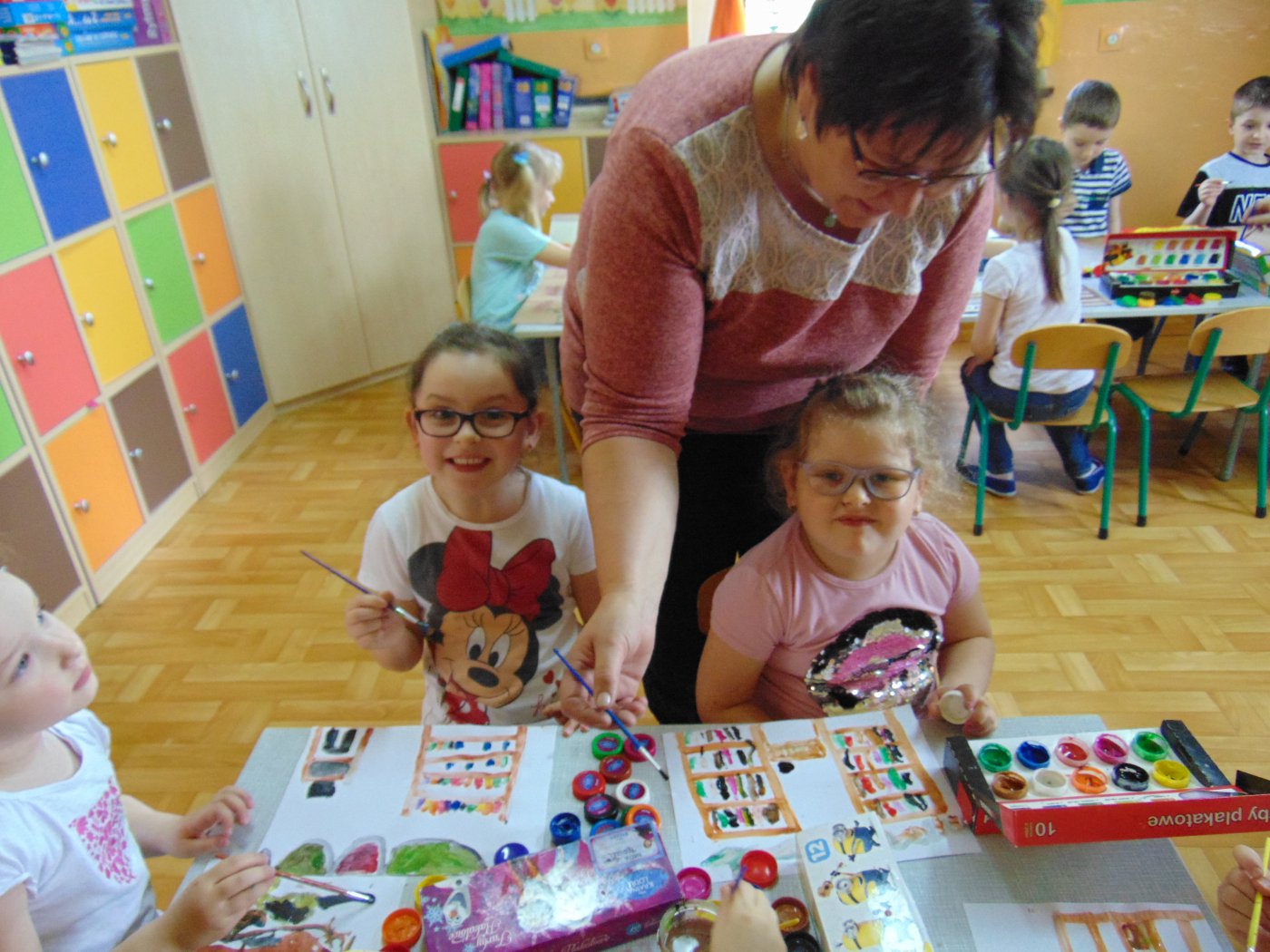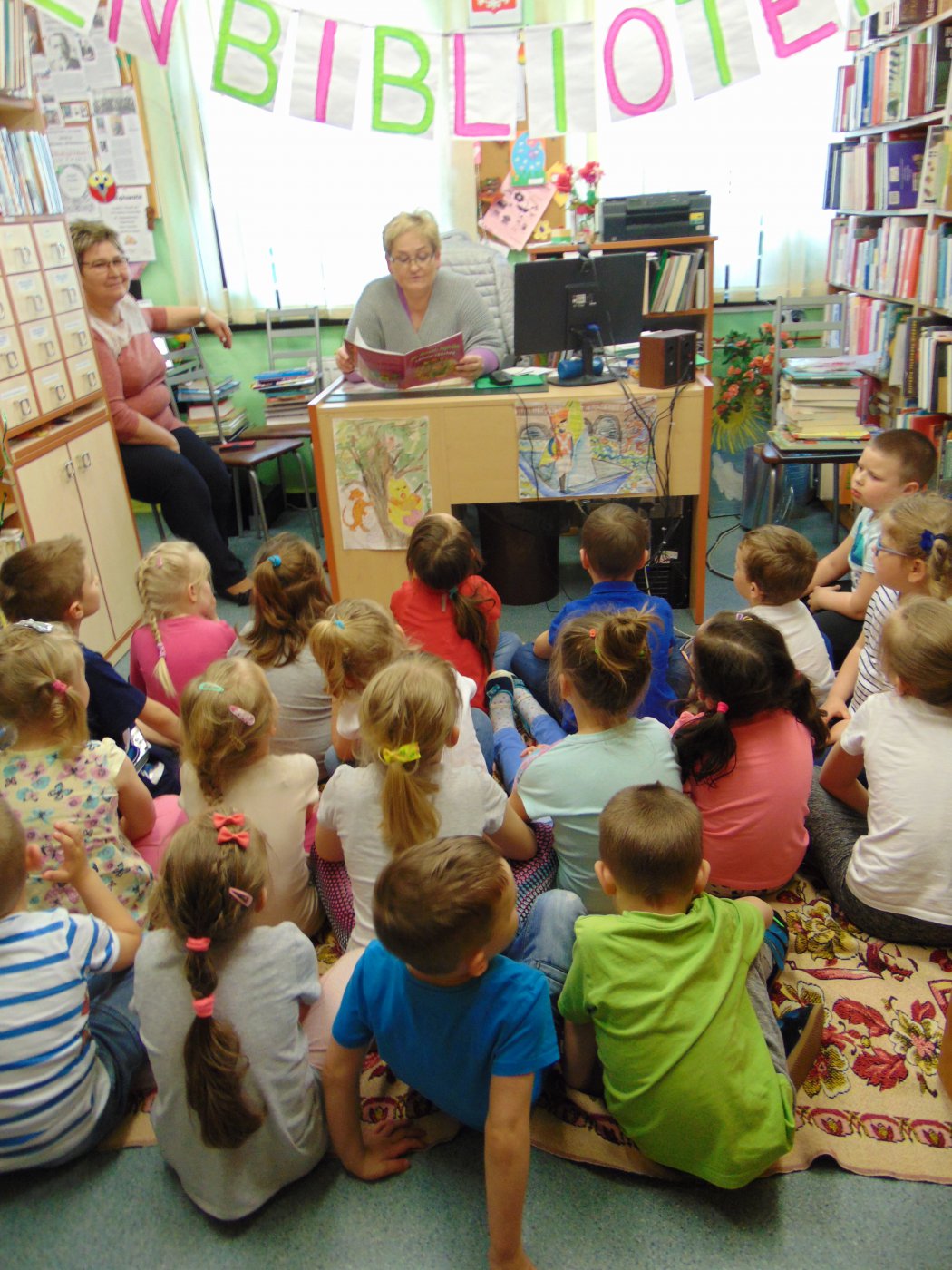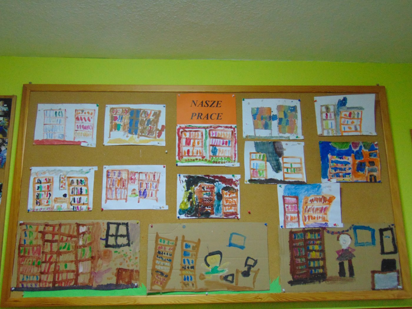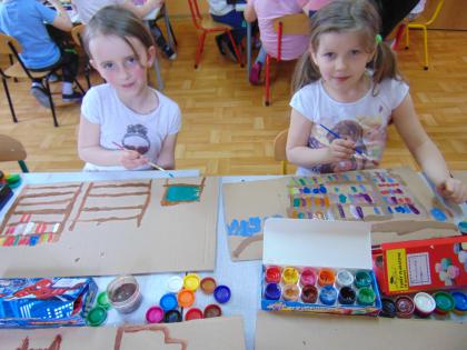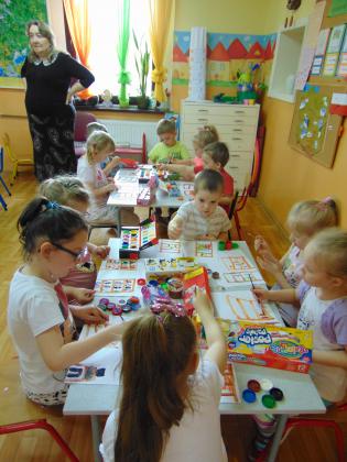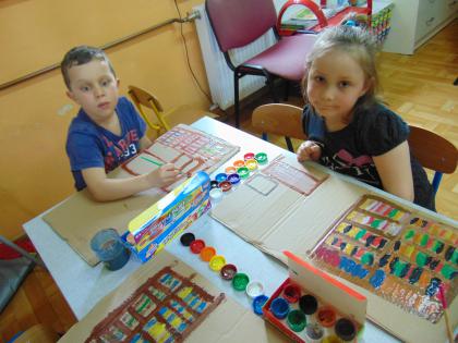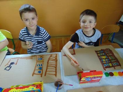Następnego dnia przedszkolacy farbami malowali bibliotekę: starszaki na kartonach, a młodsze dzieci na kartkach A4. Prace zostały wystawione w bibliotece. Natomiast 10 maja pani Edeltrauda Koza czytała dzieciom opowiadanie "Jak skrzat Jagódka zakładał w lesie bibliotekę". Tydzień Bibliotek upłynął w miłej i wesołej atmosferze.