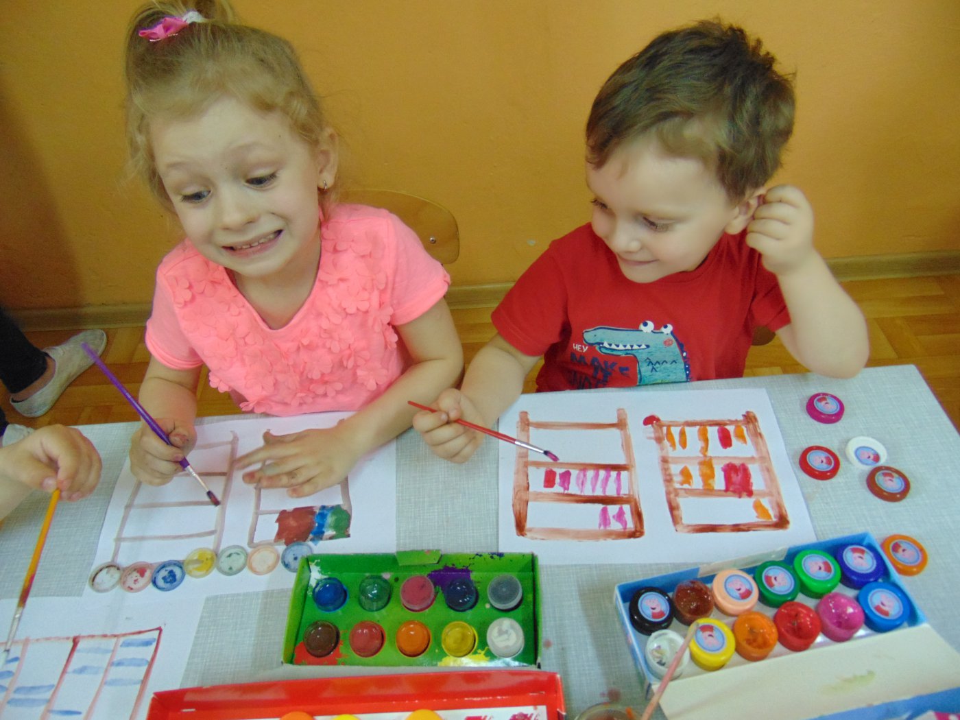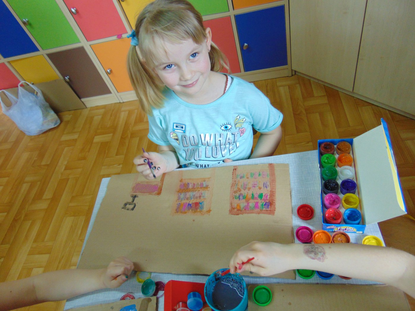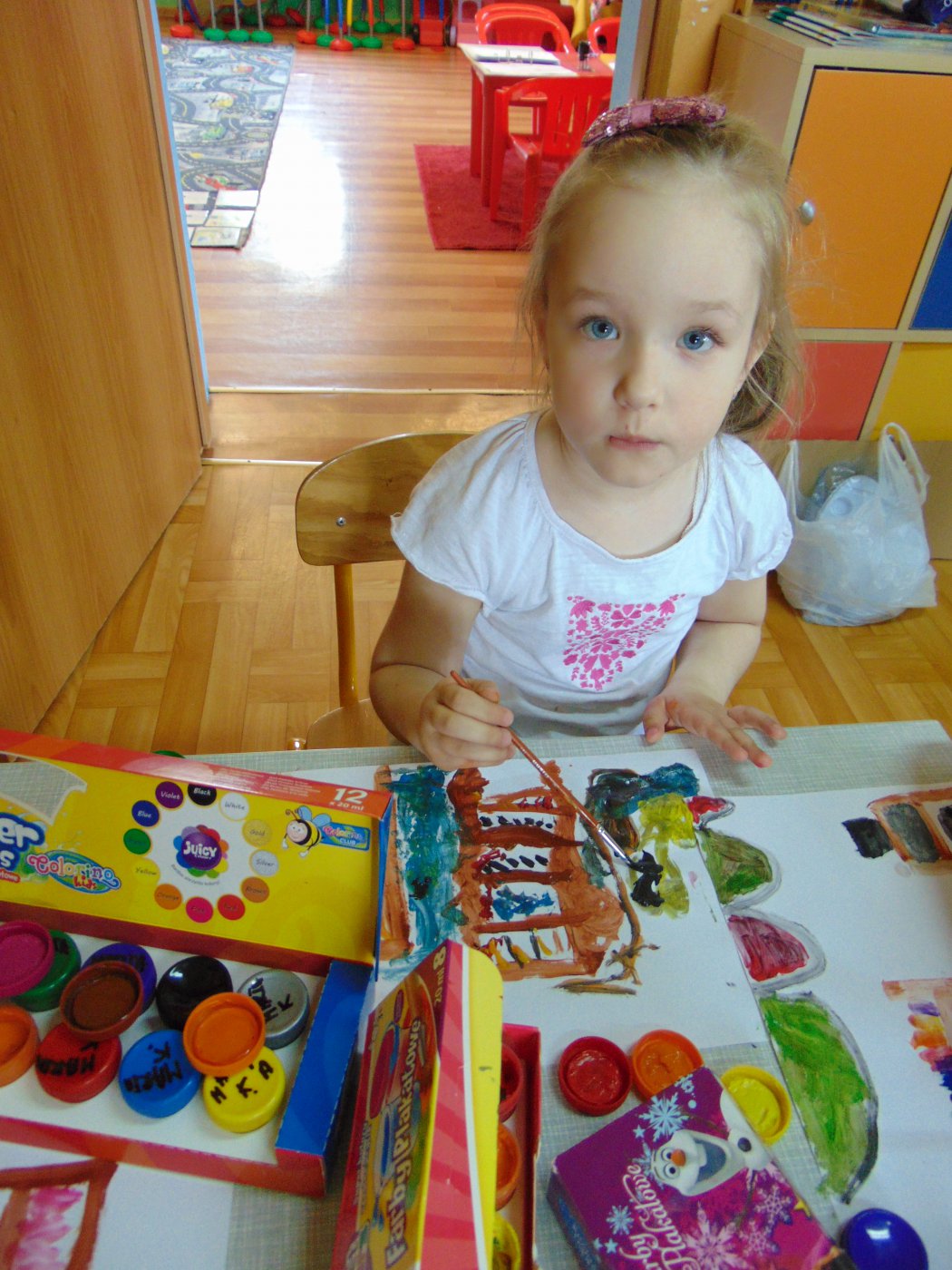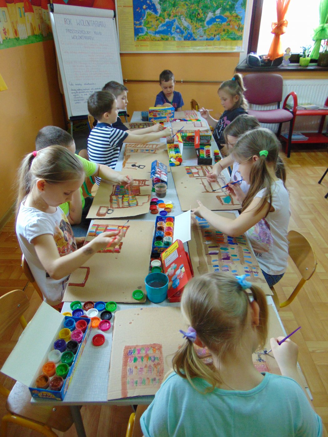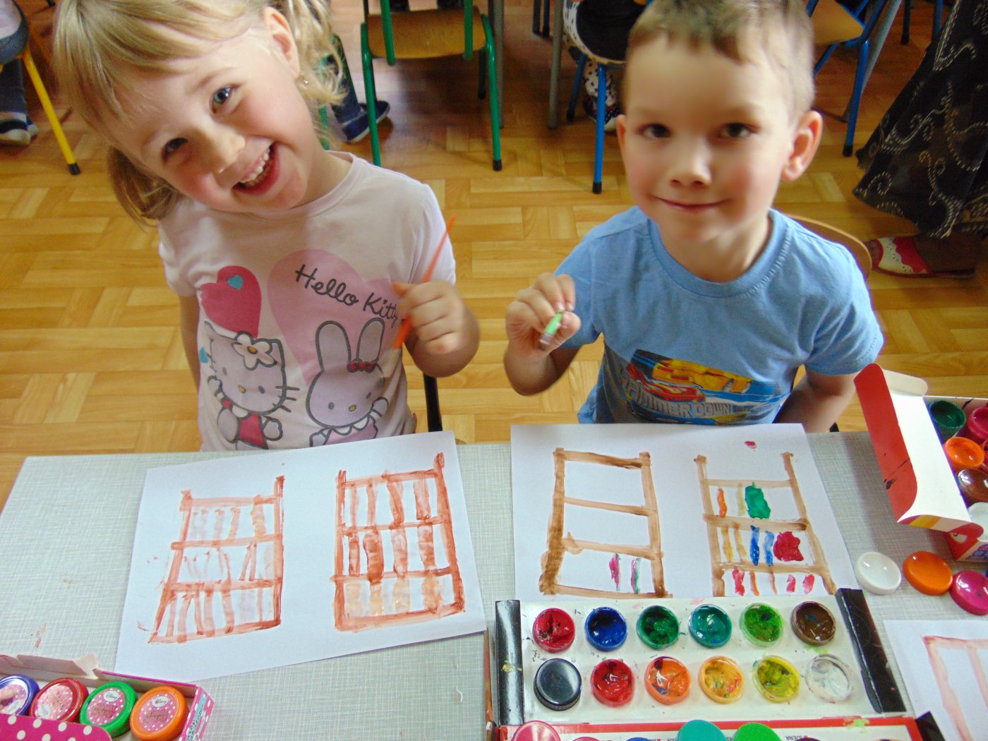 Następnego dnia przedszkolacy farbami malowali bibliotekę: starszaki na kartonach, a młodsze dzieci na kartkach A4. Prace zostały wystawione w bibliotece. Natomiast 10 maja pani Edeltrauda Koza czytała dzieciom opowiadanie "Jak skrzat Jagódka zakładał w lesie bibliotekę". Tydzień Bibliotek upłynął w miłej i wesołej atmosferze.