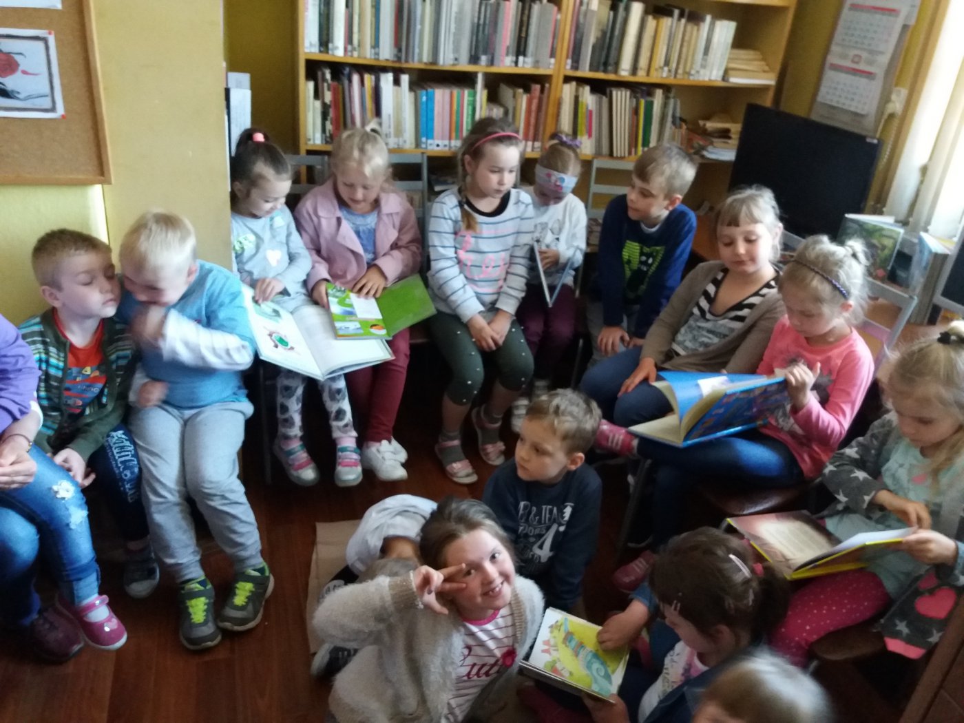 Z okazji Tygodnia Bibliotek filię w Gwoździanach odwiedzili przedszkolacy. Starszaki wysłuchały fragmentu bajeczki o ekologii pt.:"Narzekania Rzeki" Katarzyny Turaj-Kalińskiej. Zapoznały się z księgozbiorem oraz dowiedziały się na czym polega praca bibliotekarza.