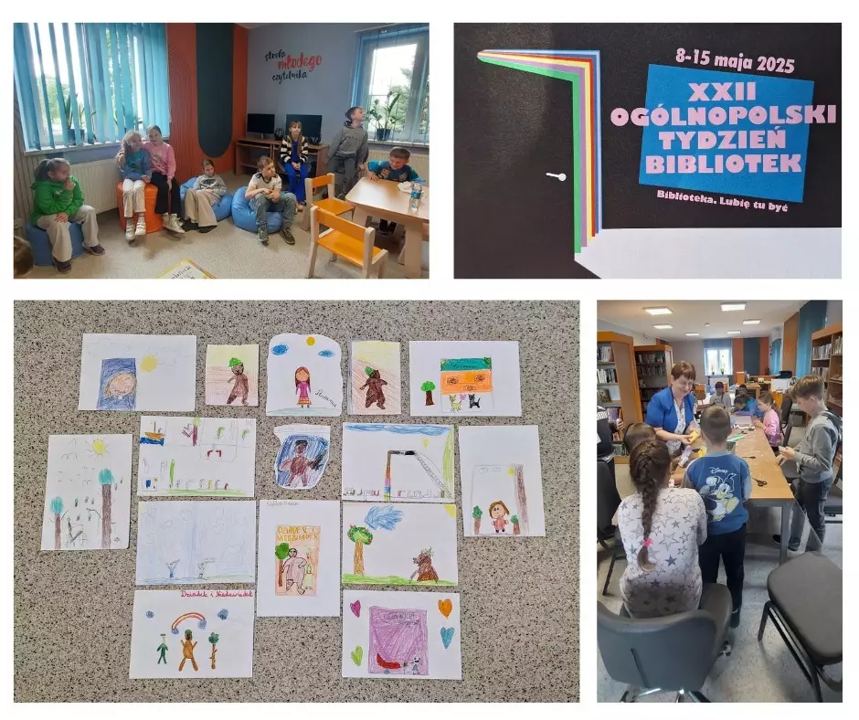 Ponadto uczniowie przynieśli już wcześniej gotowe własne rysunki ze swoimi ulubionymi bohaterami książek, o których opowiedzieli w grupie.
