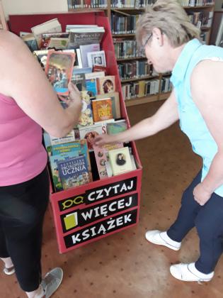 Biblioteka w czasie tego szczególnego tygodnia przygotowała wystawę książek dla czytelników dorosłych. Zainteresowani mogli zabrać wybrane przez siebie pozycje do domu. Kilka osób z tej propozycji skorzystało.