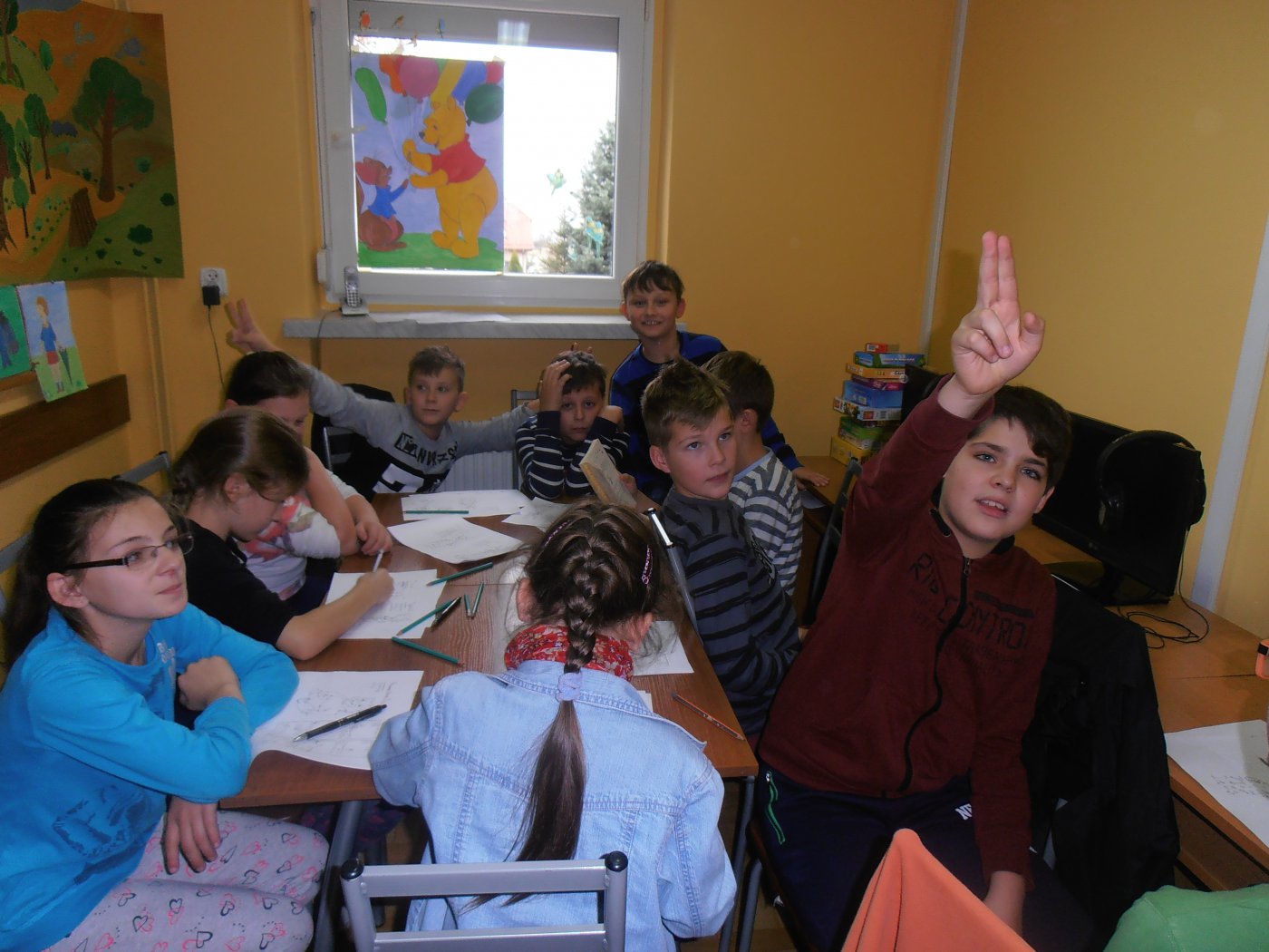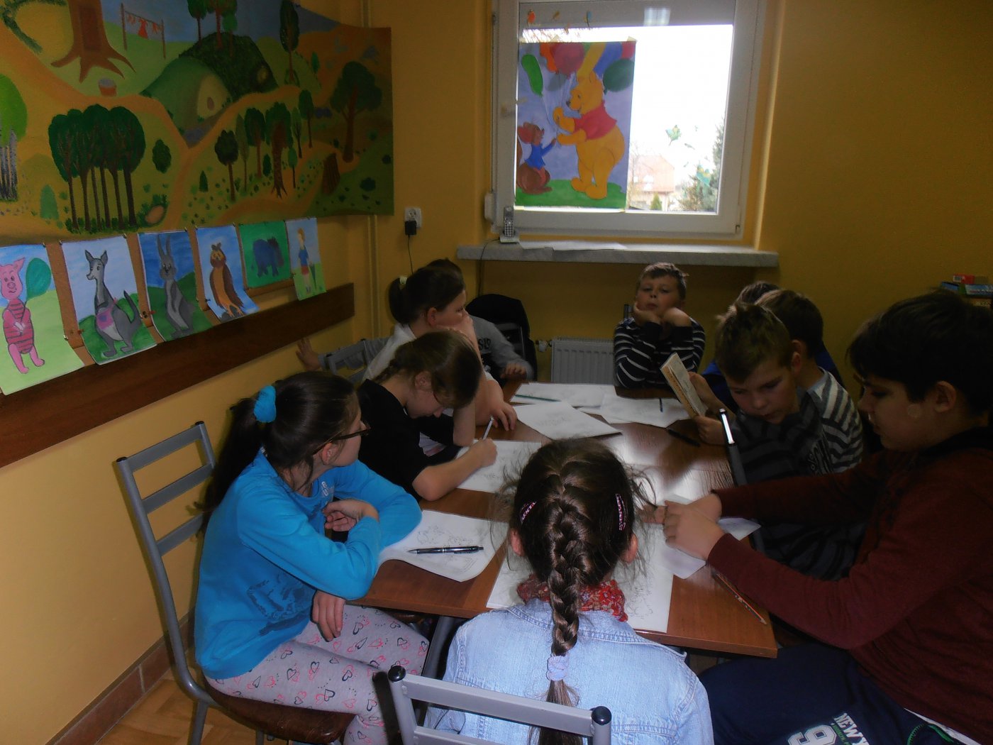 Z okazji 90-tych urodzin Kubusia Puchatka uczniowie klasy IV wzięli udział w zajęciach zorganizowanych w bibliotece w Pawonkowie. Uczniowie wspólnie rozwiązywali rebusy, krzyżówki, wykreślanki, odpowiadali na pytania dotyczące lektury oraz opowiadali przezabawne historyjki o przygodach Misia.
