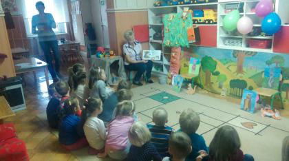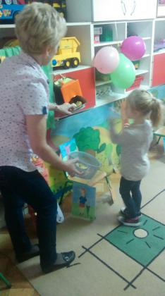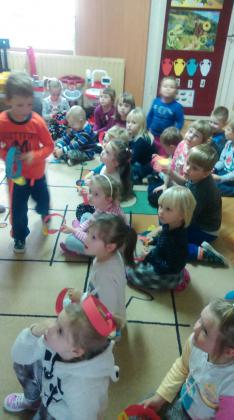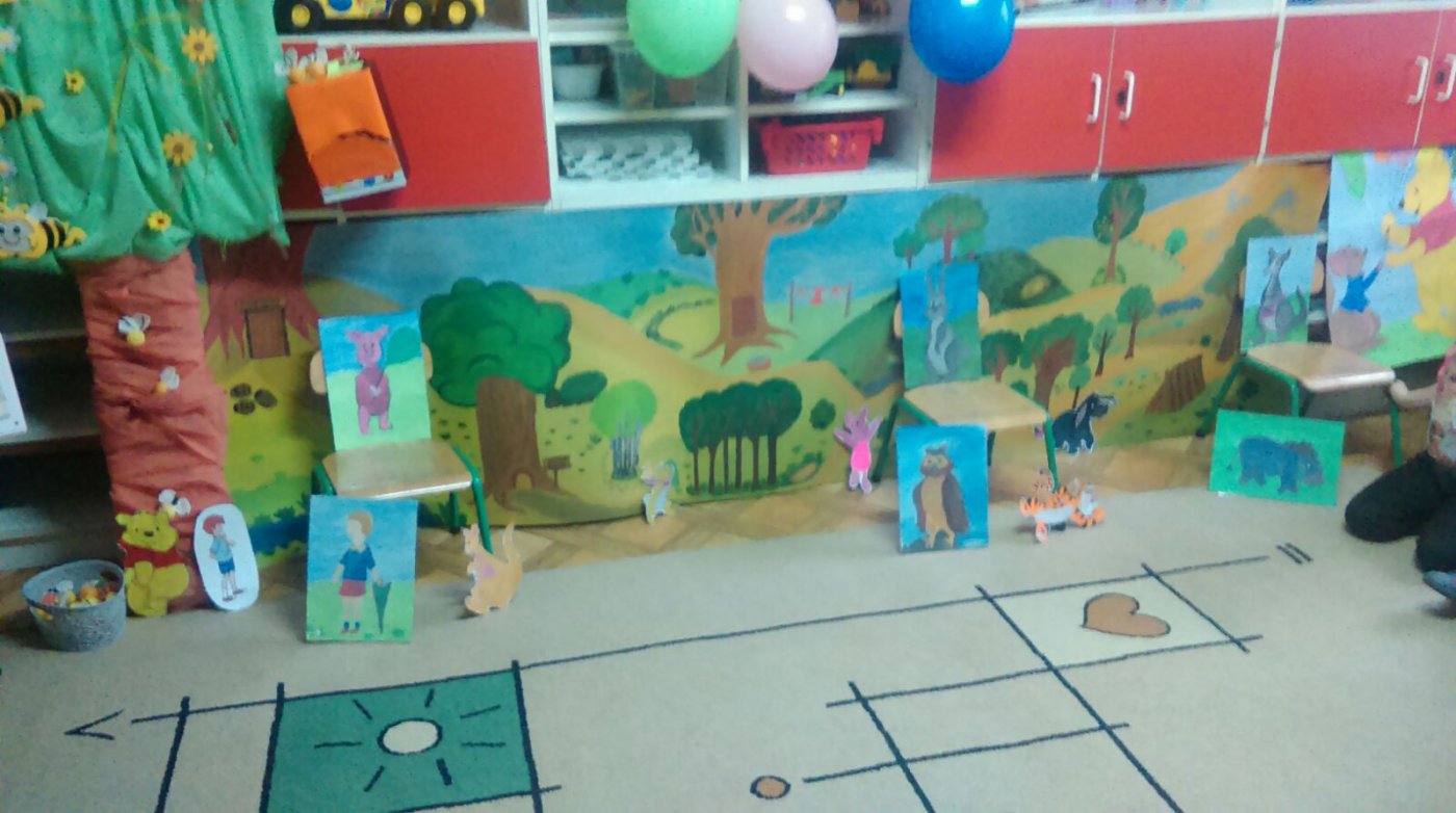 Na początku przedszkolaki wysłuchały krótkiej historii o Kubusiu i jego przyjaciołach. Dzieci świetnie się bawiły: próbowały unosić się na balonikach, zaganiały pszczółki do ula i wchodziły do norki króliczka.