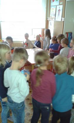 28 listopada, z okazji urodzin Kubusia Puchatka, bibliotekarka Jadwiga Kukowka odwiedziła Przedszkole w Gwoździanach.
