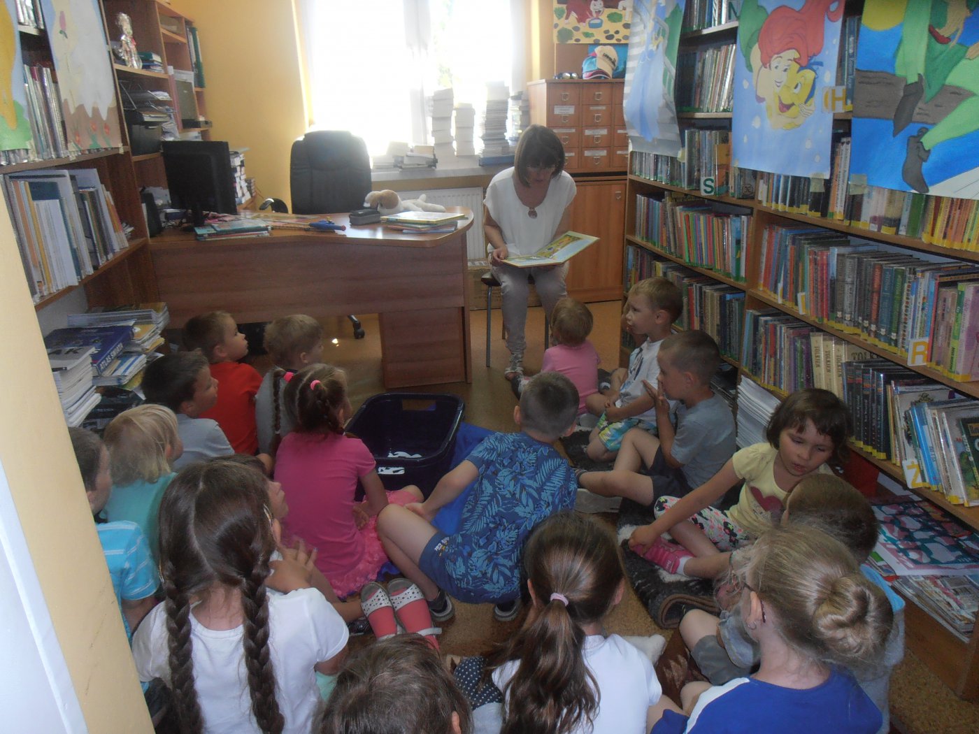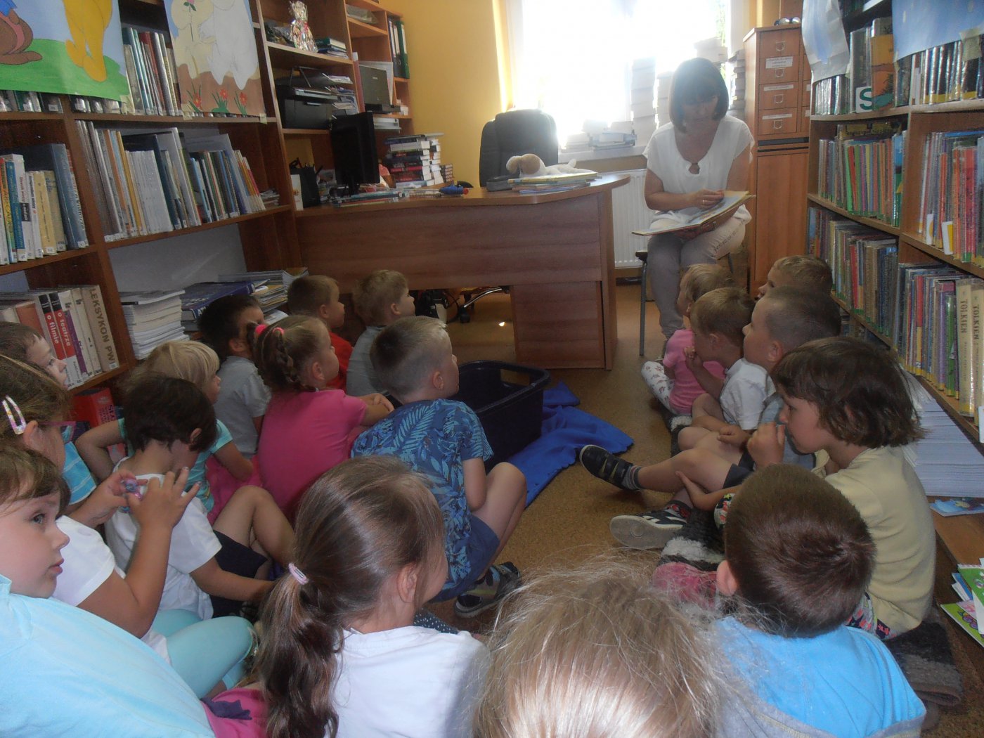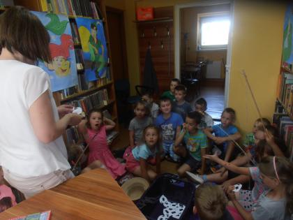 W czerwcu w bibliotece w Pawonkowie obchodziliśmy 50 urodziny przyjaciela wszystkich dzieci, wspaniałego psa Reksia. Z tej okazji przedszkolacy z grupy młodszej i starszej wzięli udział w zajęciach, podczas których wysłuchali jednego opowiadania o przygodach Reksia pt.: "Nad jeziorem".
