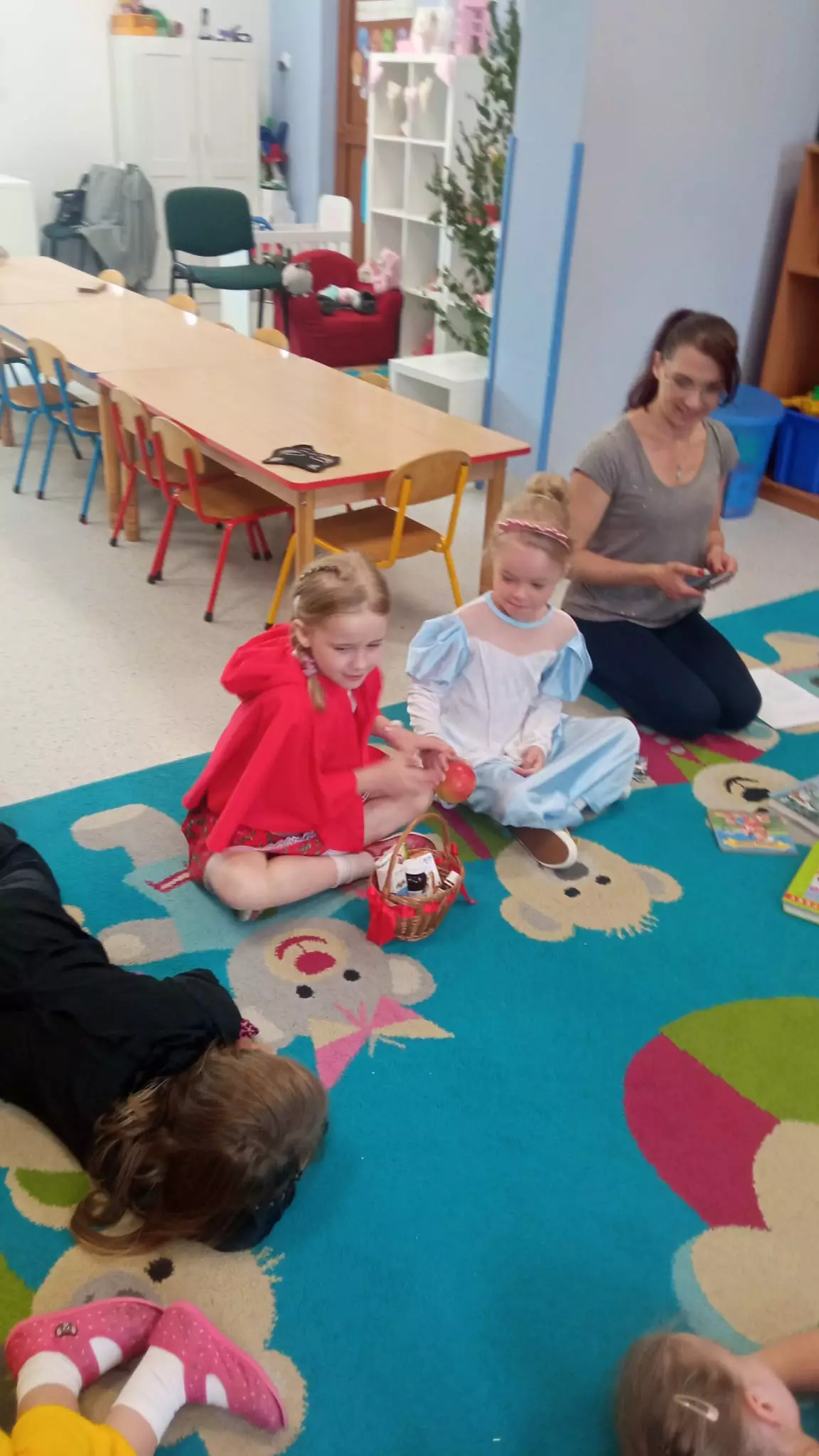 18 czerwca przedszkole w Łagiewnikach Małych odwiedziła pani bibliotekarka. W tym dniu do przedszkola zawitały także postacie bajkowe. Dzieci za pomocą czarodziejskiego napoju o smaku fantazji i radości przeniosły się do krainy baśni. Trafiły do chatki Królewny Śnieżki i 7 krasnoludków. Krasnoludki zaprosiły je do tańca przy piosence "Idzie sobie krasnoludek". Późnej dzieci wysłuchały historii Śnieżki i kosztując zatrutego jabłka zapadały w sen. Obudziły się w domu Kopciuszka, któremu pomagały oddzielać fasolę od kaszy. Gdy wykonały zadanie czarodziejski napój przestał działać. Postacie bajkowe zniknęły, wokół pojawiły się przedszkolne zabawki. Był to mile spędzony bajkowy czas.