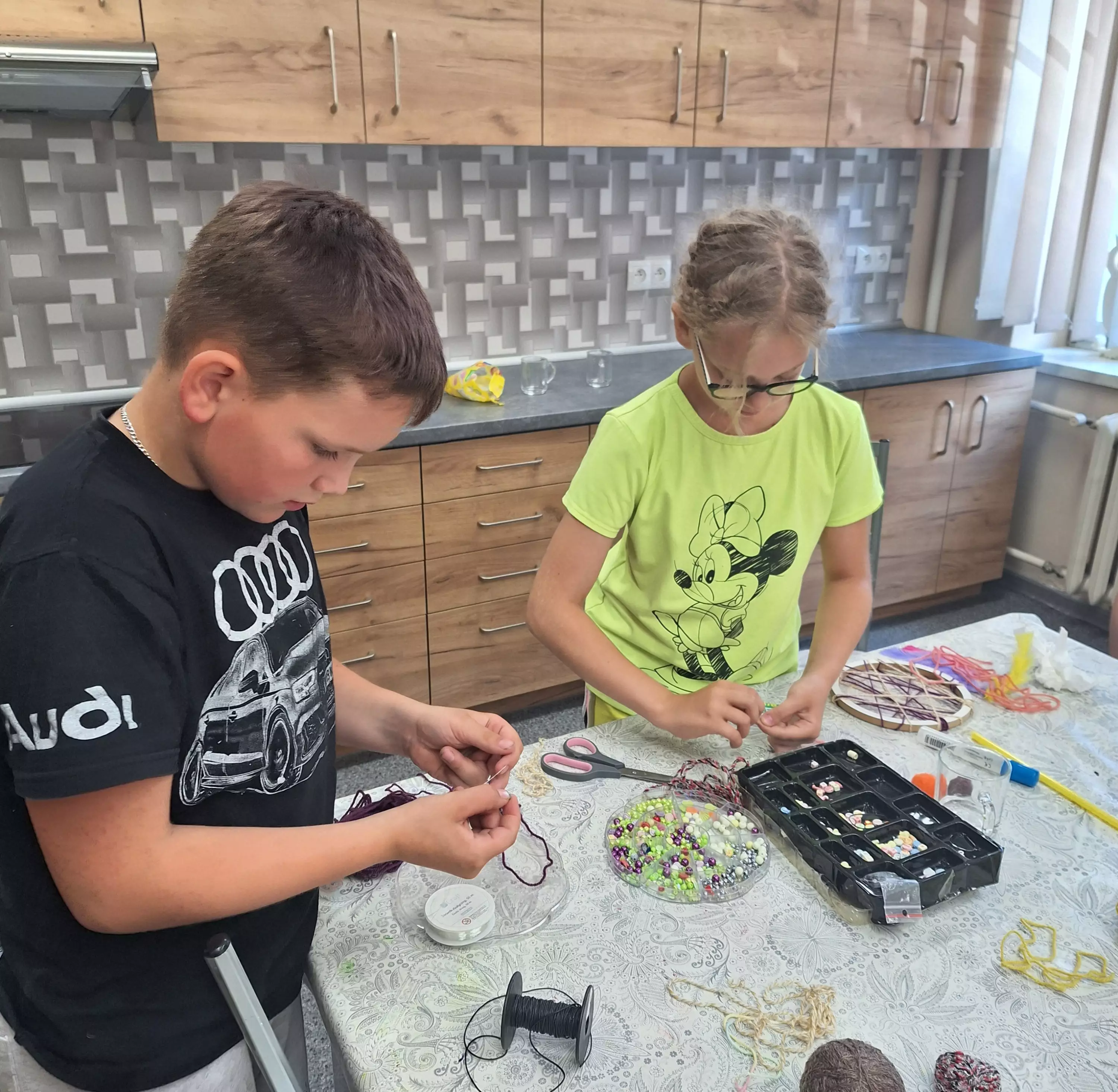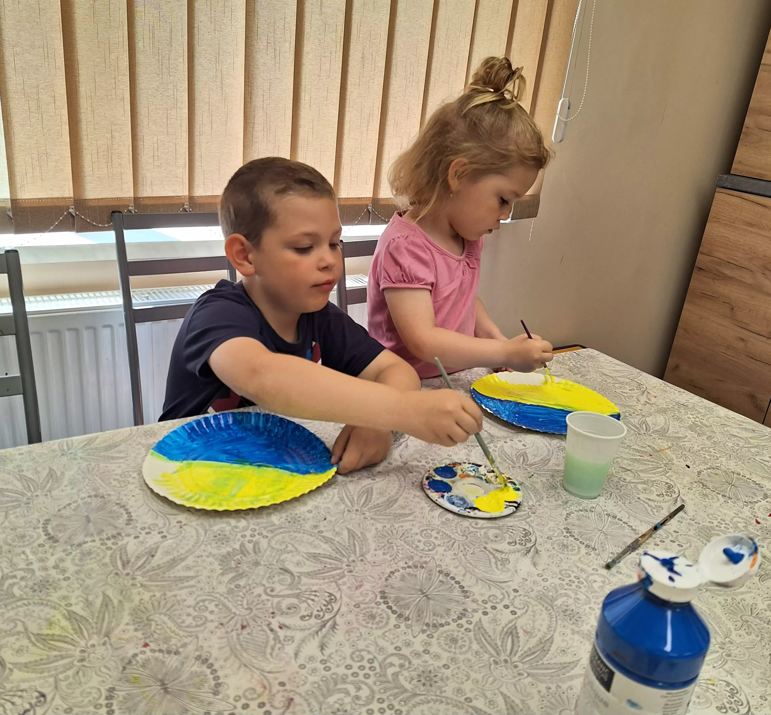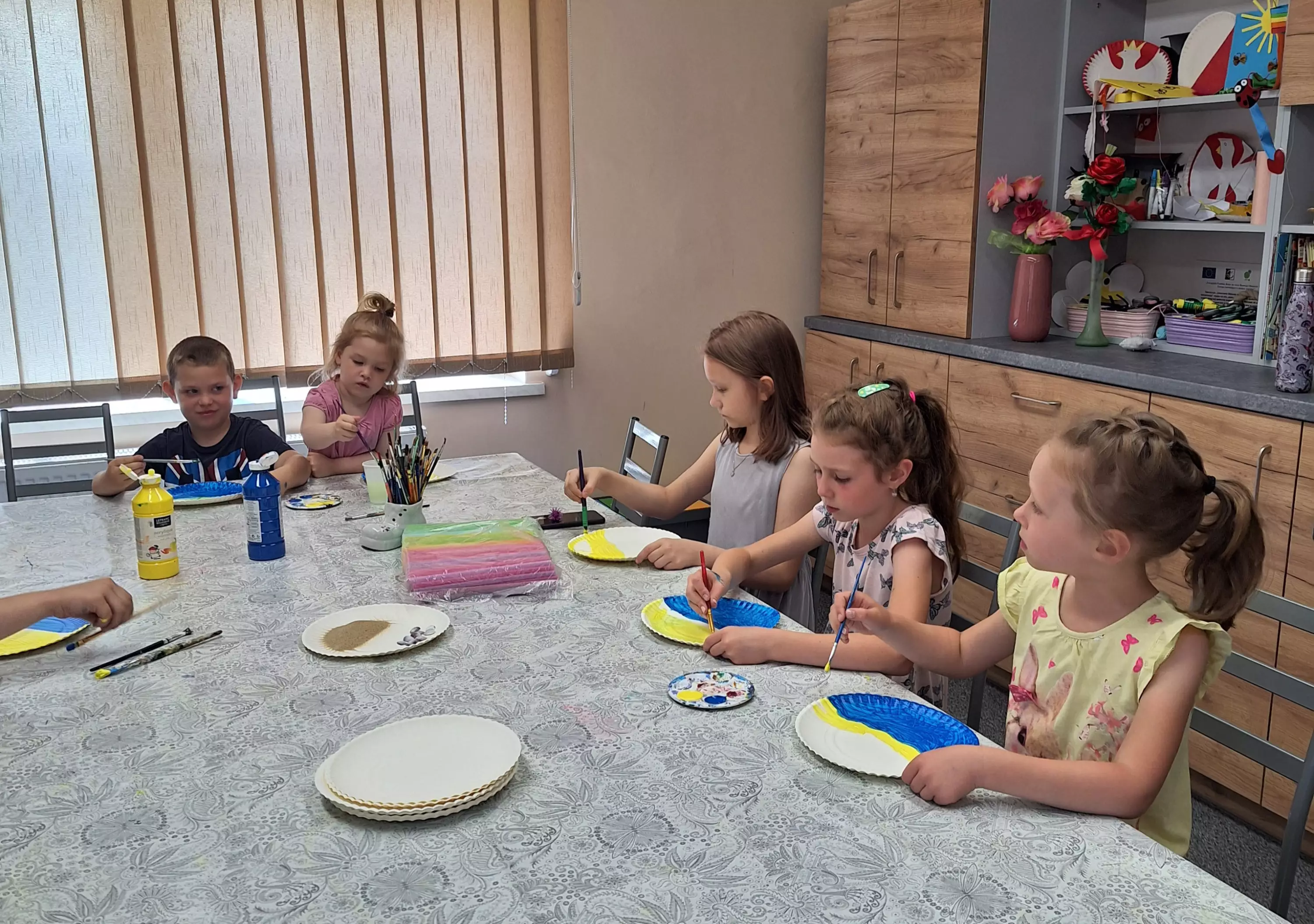 Chłopak sypie piaskiem pomalowany farbami talerzy.Chłopczyk i dziewczynka malują farbami.Dziewczynki malują farbami talerzyk papierowy.Dziewczynka i chłopczyk z kolorowego papieru wykonują parasol.Prace plastyczne.Dzieci bawią się w wyścigi statków.Dzieci bawią się w wyścigi statków.Chłopcy wykonują kolorowe łapacze.Chłopak i dziewczyna nawlekają koraliki.Łapacze wakacyjnych przygód.Dzieci bawią się w zabawę dmuchając balonik.Dzieci dmuchają baloniki w kubeczkach i składają je razem.Dzieci bawią się w zbieranie kolorowych karteczek słomkami.Dzieci bawią się w zbieranie kolorowych karteczek słomkami.Dzieci rozgrywają mini turniej gry Państwa-Miasta.