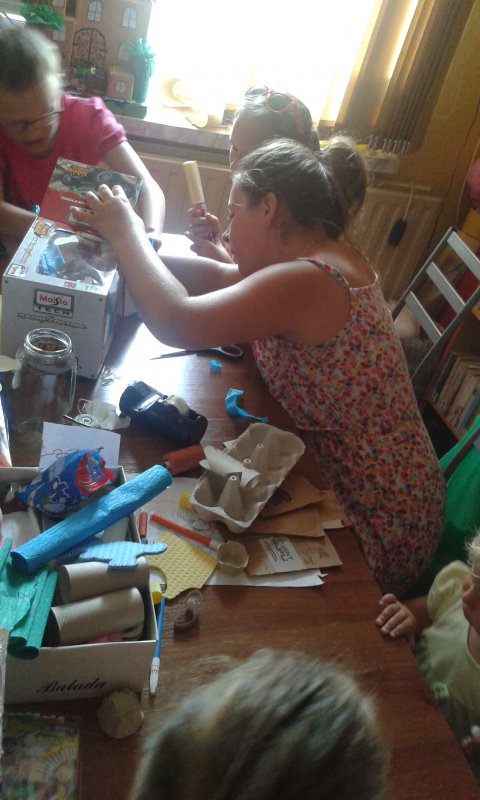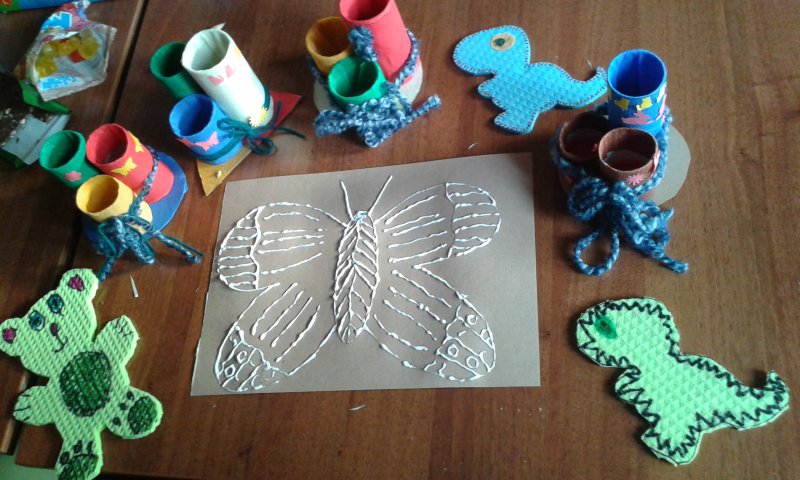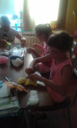 W czasie zajęć wykorzystane zostały różnego rodzaju materiały: papier, bibuła, karton, filc, gąbki, wełna, rolki, farby, klej, plastelina oraz ciastolina. Powstało piękne akwarium z rybkami, misie przytulanki, mały "dinuś", ptaszki, laleczki, śliczne zwierzaki i obrazki oraz pomponiki-cudaczki