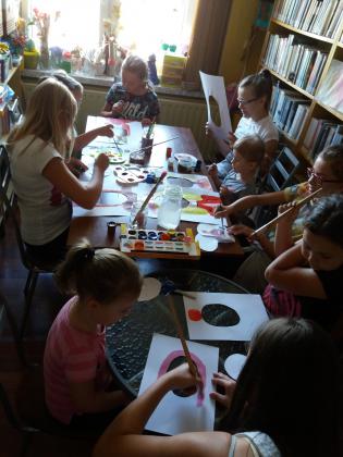 Były także zajęcia prowadzone przez panią Katarzynę Koza z LCSK, na których dzieci poznały różne techniki malowania farbami akrylowymi.