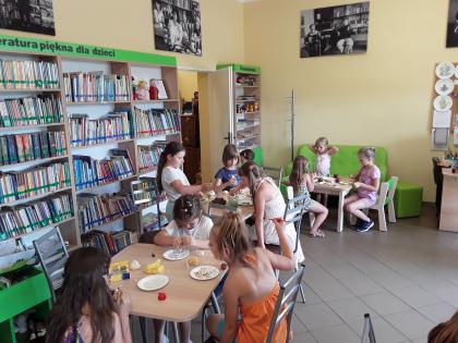 W czasie wakacyjnych spotkań w bibliotece dzieci poznały mniej znane baśnie H. CH. Andersena takie jak: "Wielki wąż morski", "Krzesiwo", "Mała Syrenka", "Dziewczyna, która podeptała chleb", "Stokrotka", "Słowik", "Pięć ziarenek grochu", "U króla Olch".