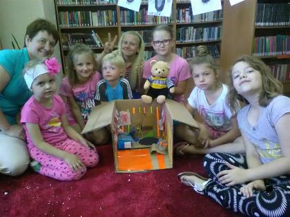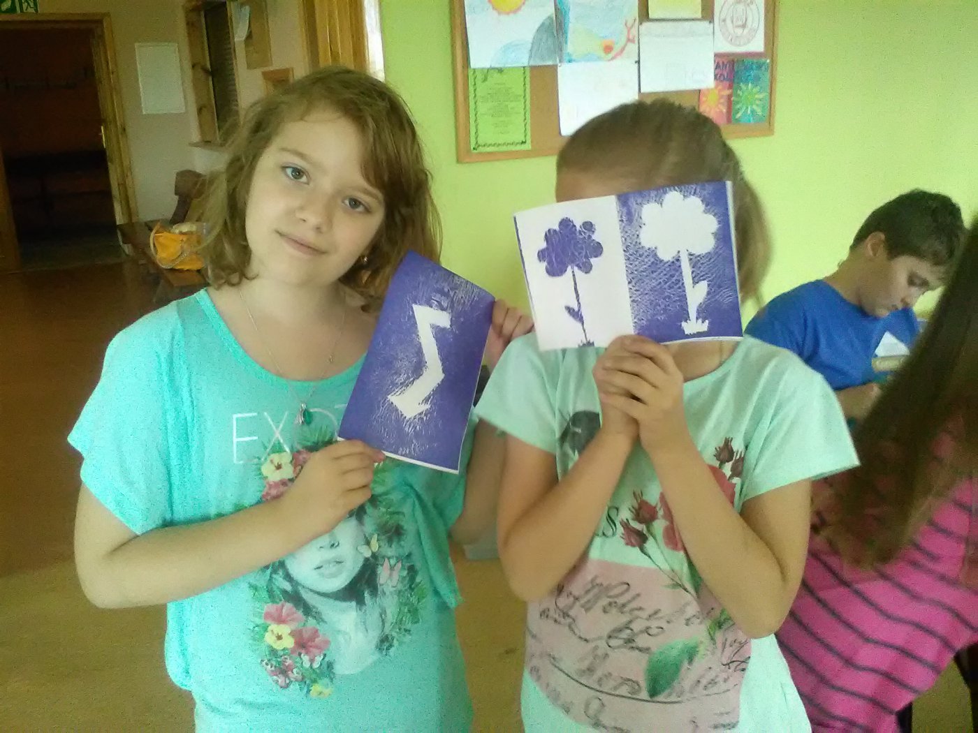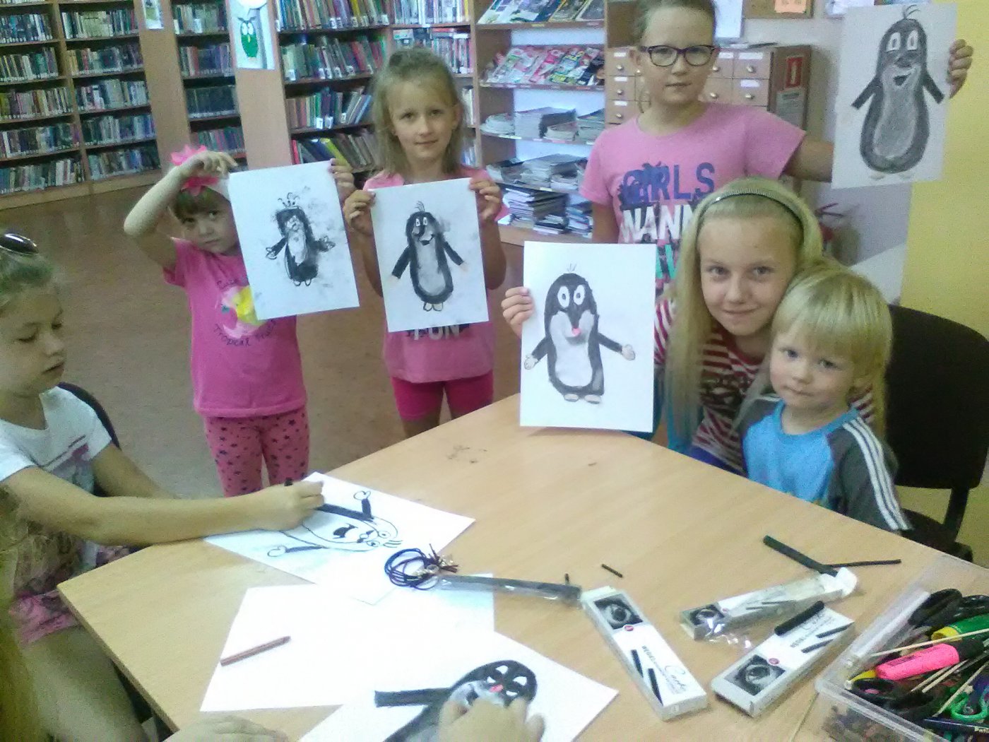 W czasie wakacji nie brakło również prac plastycznych, które teraz ozdabiają bibliotekę.