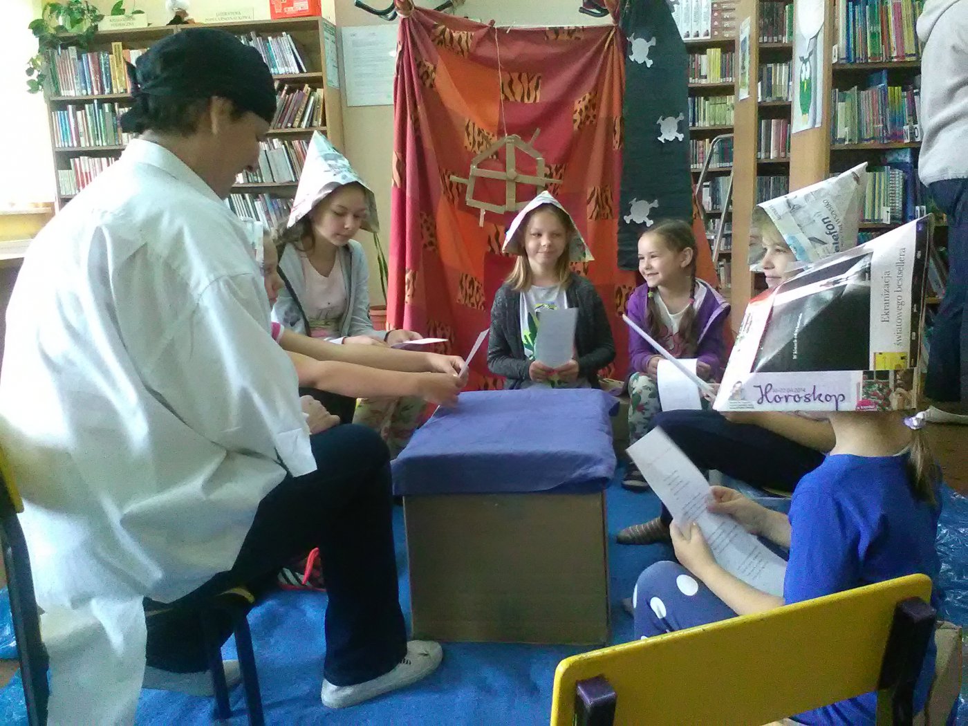 Wakacje w Bibliotece w Lisowicach upłynęły pod hasłem Z KSIĄŻKĄ I PRZYGODĄ. Na uczestników czekało wiele atrakcji. Rozpoczęły się one od budowania i podróży statkiem pirackim oraz szukania skarbu.