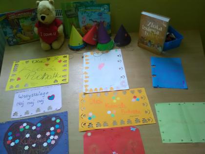 Następnie świętowaliśmy urodziny Misia Uszatka oraz dzień sportu, gdzie każde dziecko mogło sprawdzić swoje umiejętności fizyczne. Zostały też przygotowane podchody, w których dzieci musiały wykonać różne zadania w czasie drogi do celu.
