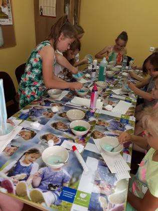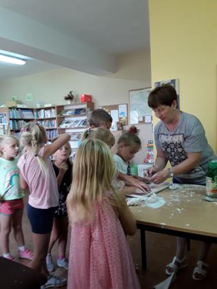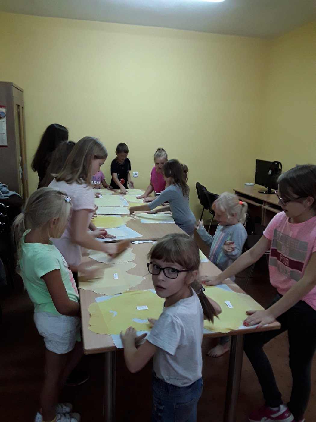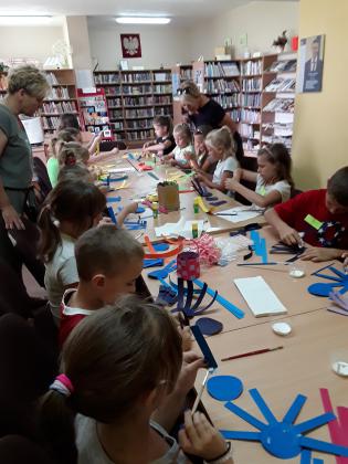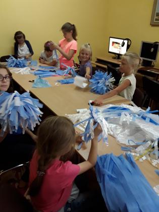 Podczas wakacji wiele dzieci skorzystało z zaproszenia na zajęcia plastyczne, czytelnicze oraz muzyczno- sportowe organizowane w bibliotece w Lisowicach. Uczestnicy warsztatów wykonywali pompony, wstążki gimnastyczne oraz chorągiewki biało- czerwone. Natomiast Panie Katarzyna i Hania z MBP w Lublińcu uczyły dzieci robić kwiatki i koszyczki z papieru. Odbyły się warsztaty kulinarne prowadzone przez Panią Renatę z SRS Lisowice, gdzie poznano przepisy na domowy makaron i kołoczki.