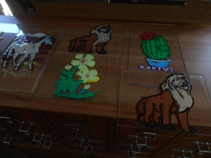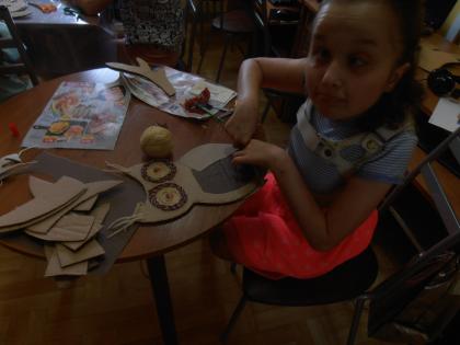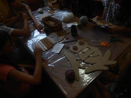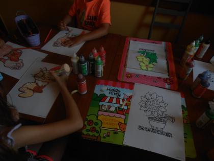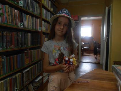 W czasie lipcowych literackich podróży młodzi czytelnicy razem zwiedzili Polskę, państwa: Europy, Afryki, Ameryki i Azji. Wspólnie wyszukiwano ciekawostek na temat zabytków i geografii różnych krajów, korzystano przy tym z książek i internetu. Wysłuchano wielu opowiadań, wierszy, legend np. Bajki o Wiśle, Lew w Paryżu, Legendy o chińskim smoku czy fragmentów: Pyzy na polskich dróżkach, W pustyni i w puszczy i Afryki Kazika. Uczestnicy zajęć chętnie też wykonywali różne prace plastyczne np.: laleczki Pyzy, wazoniki i koszyczki ozdobione ludowymi wzorami, koralikowe podstawki, portrety Chinki czy afrykańskie pejzaże. Był też czas na zabawy i gry planszowe oraz rozwiązywanie quizów czy zagadek. W sierpniu na warsztatach plastycznych powstały wełniane stworki- potworki, obrazki malowane na szkle i ekologiczne sowy. W czasie spotkań w bibliotece wszyscy dobrze się bawiąc rozwijali swoje umiejętności plastyczne oraz poszerzali wiedzę o świecie i literaturze.