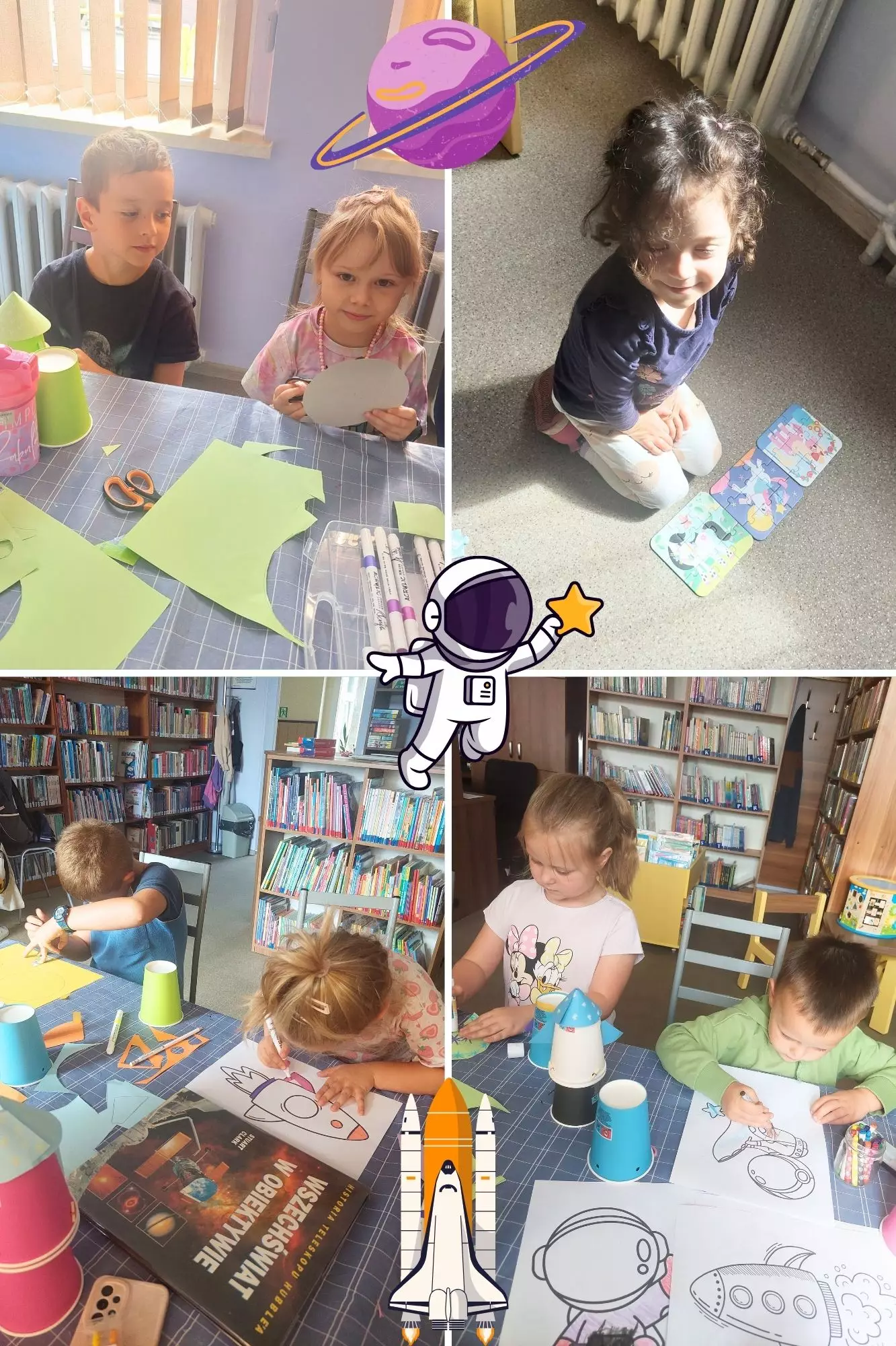 Dzieci dowiedziały się, czym lata się w kosmos, z zainteresowaniem przeglądały książki o planetach, gwiazdach i rakietach.