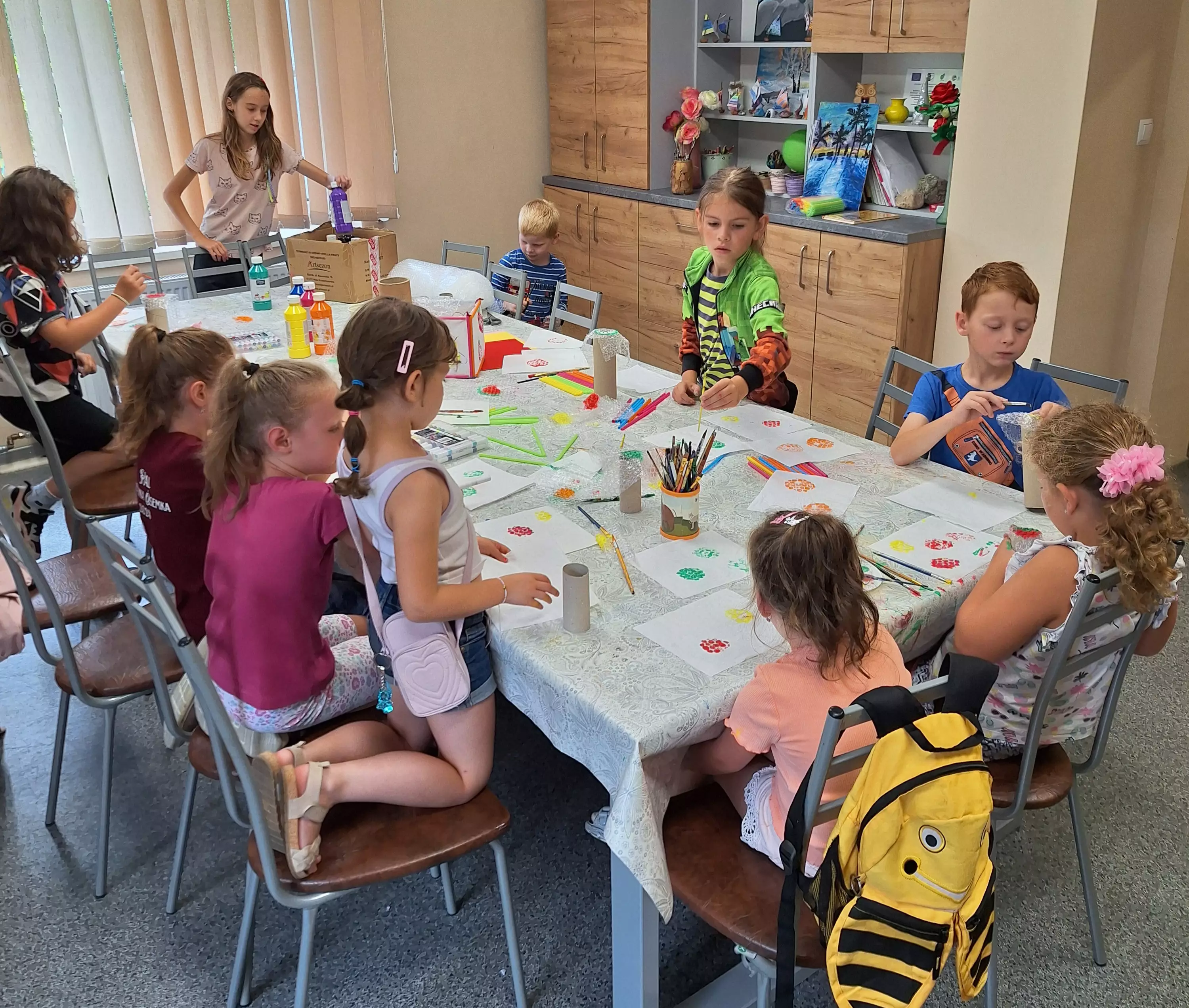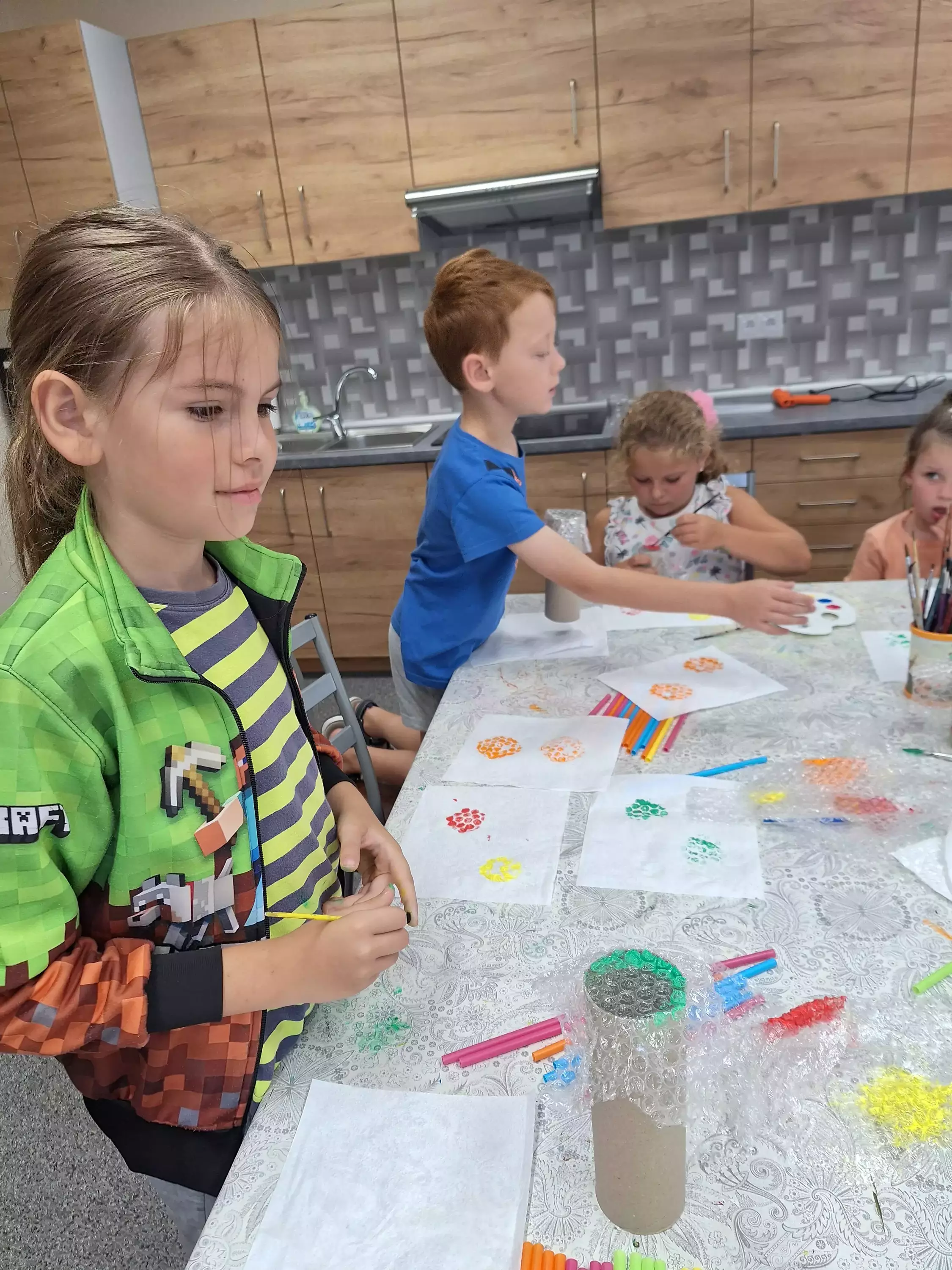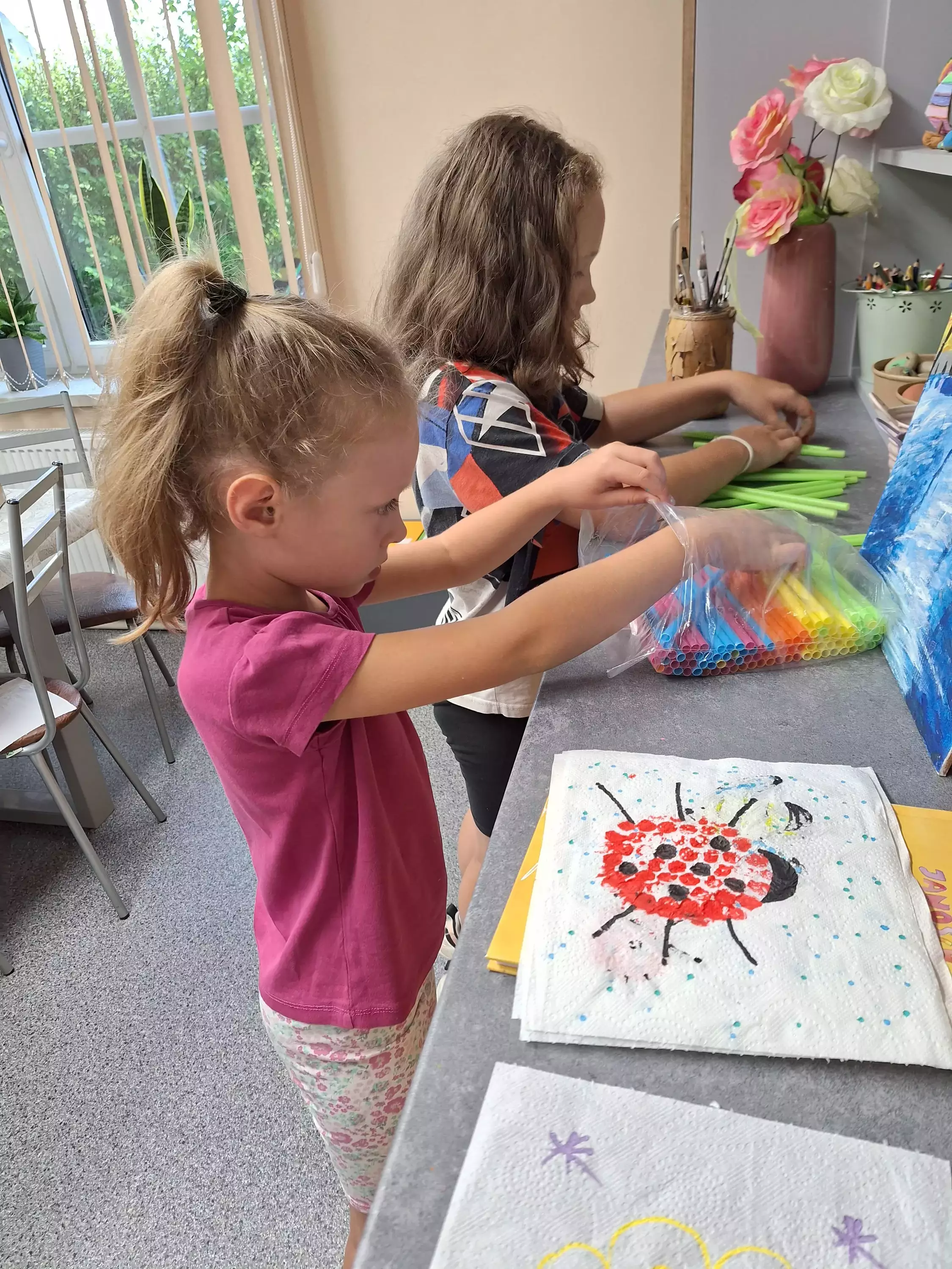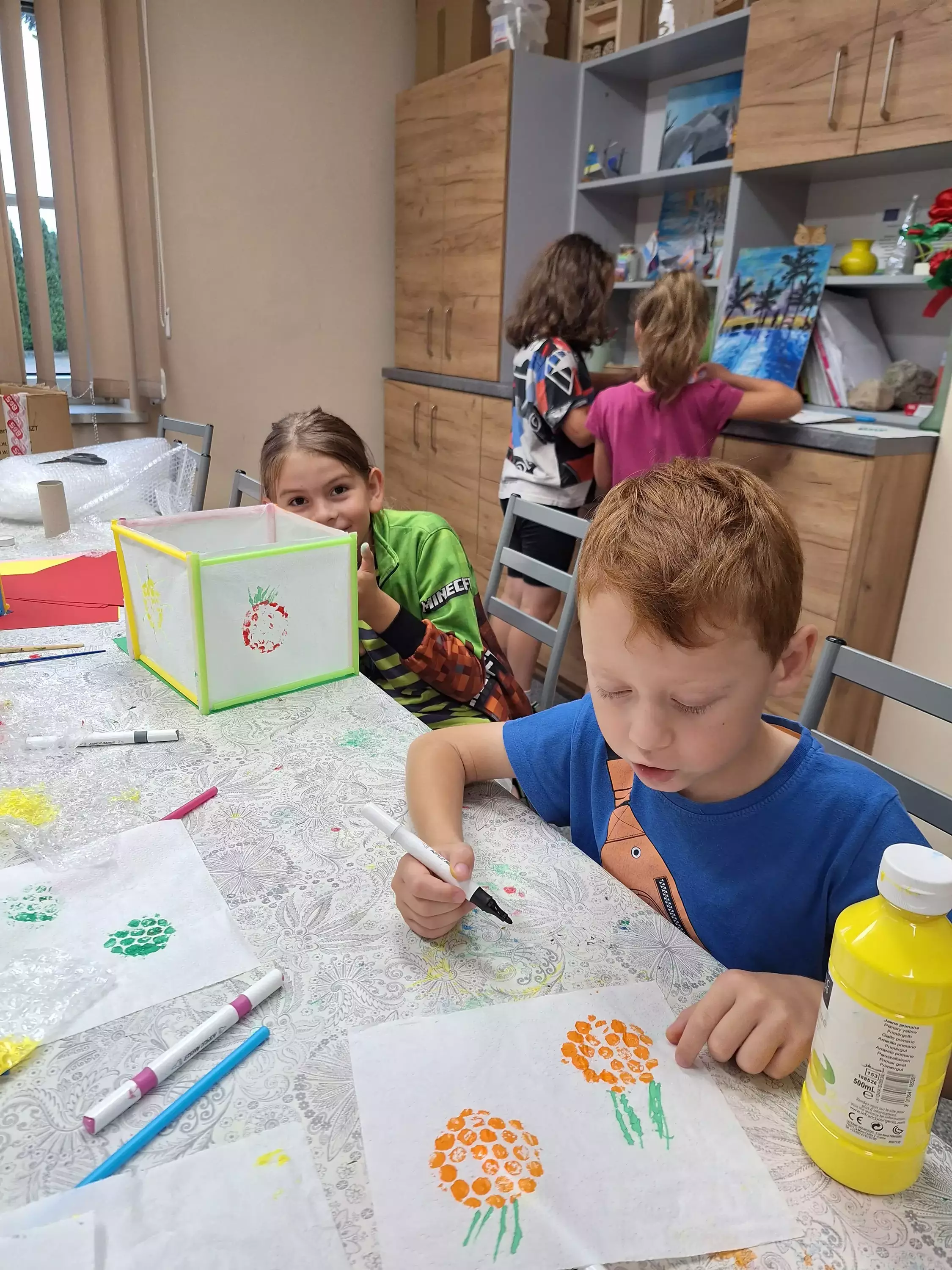 Wczoraj, w Pawonkowie na zajęciach dzieci stworzyły magiczne lampiony z kawałków ręcznika papierowego i plastikowych słomek. Na ściankach malowały słoneczka, kwiatki, zwierzątka i owoce. Kolorowe latarenki rozświetlą teraz niejedną wakacyjną noc.