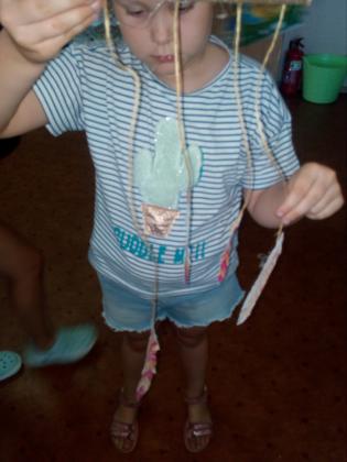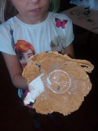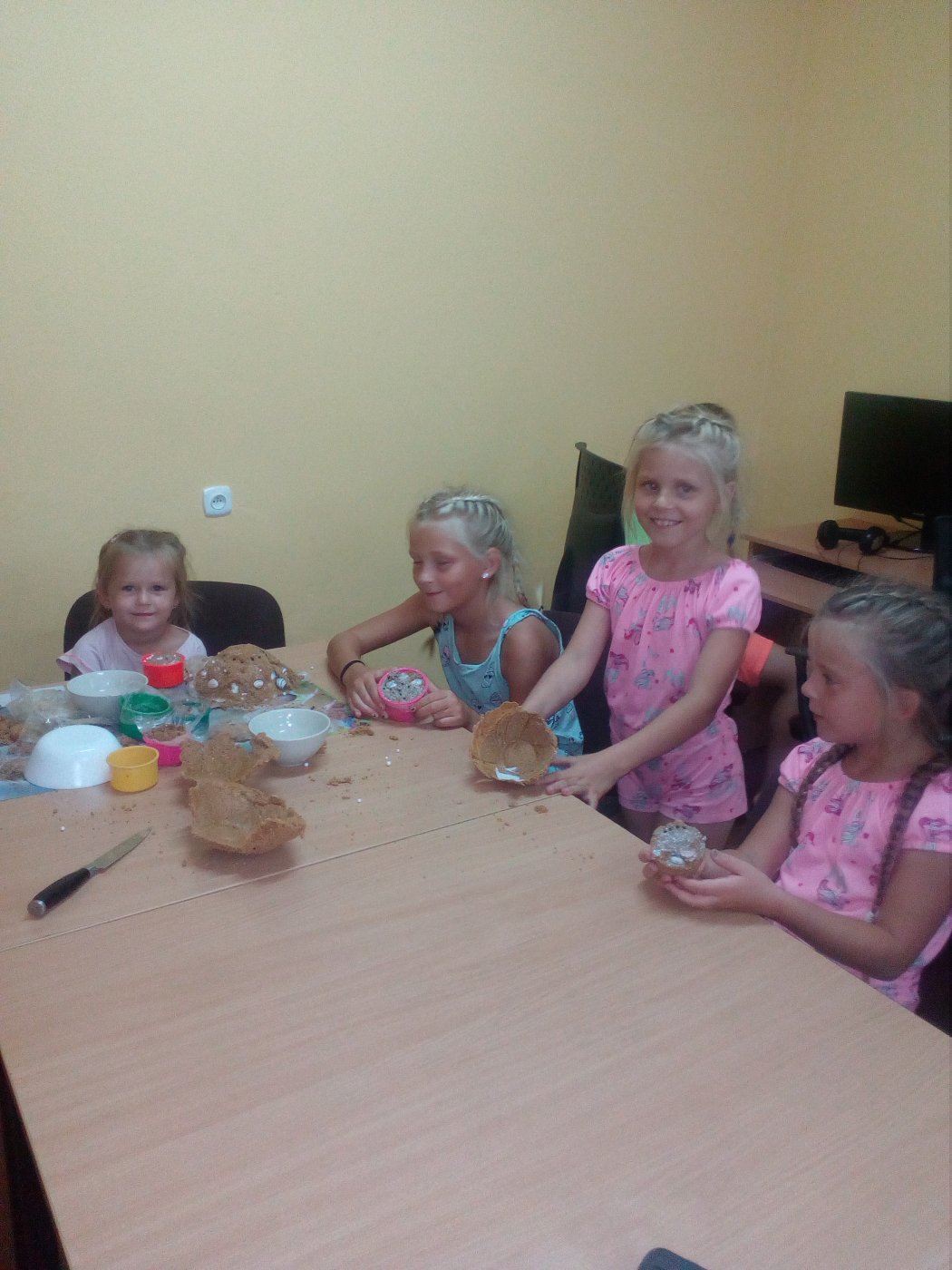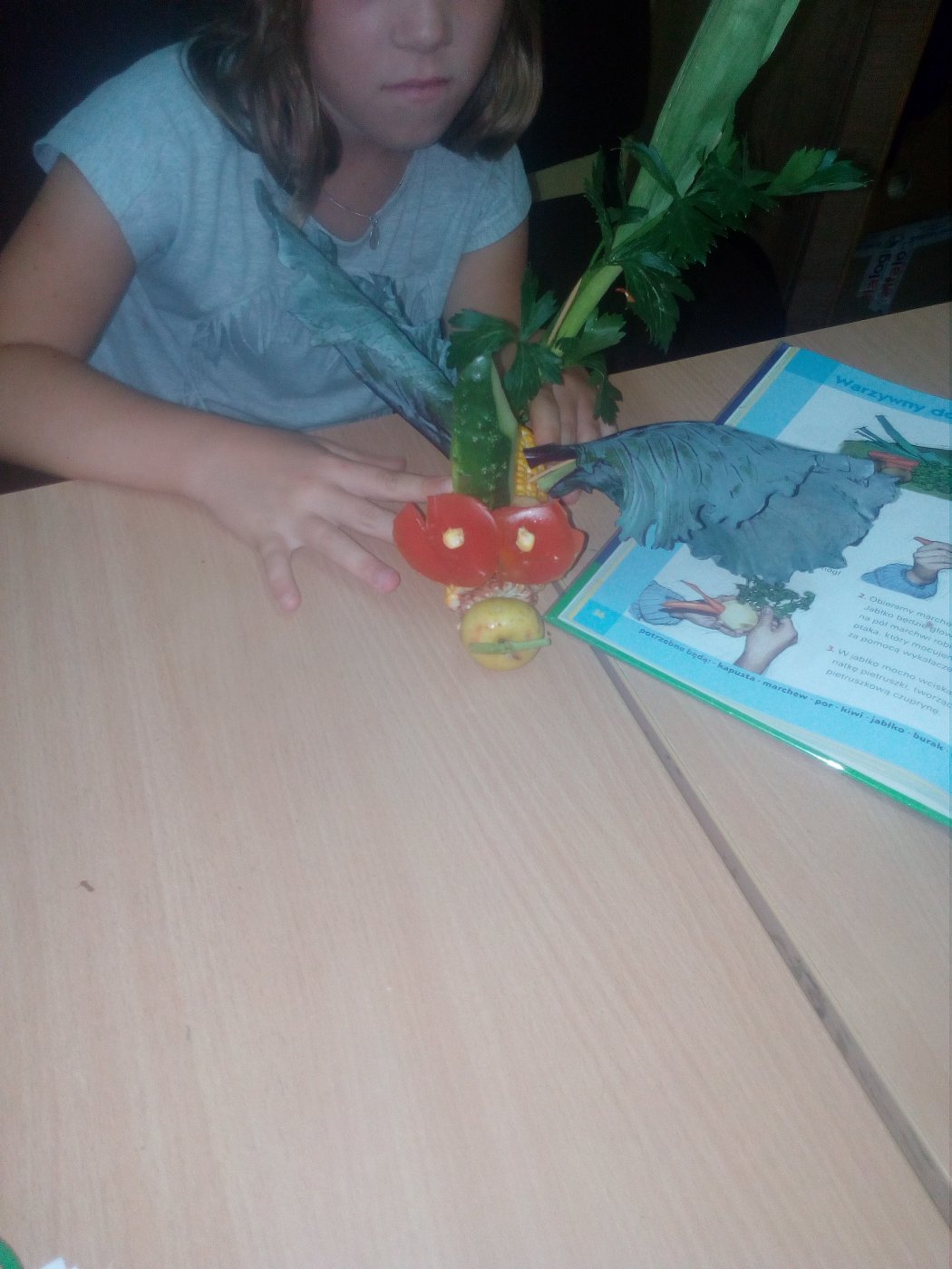 Na kolejnym spotkaniach dzieci wykonały ozdobne miseczki z masy piaskowej. Dużo frajdy i zabawy było również podczas wykonywania warzywnych cudaków –zwierzaków. Chętnie zrobiono też sałatkę warzywno-owocową, która bardzo wszystkim smakowała. Spotkanie na zakończenie wakacji było bardzo wesołe i radosne. Dzieci brały udział w różnych zabawach, które też same wymyślały. Były też wakacyjne niespodzianki i życzenia powodzenia w szkole od Pani Bibliotekarki.