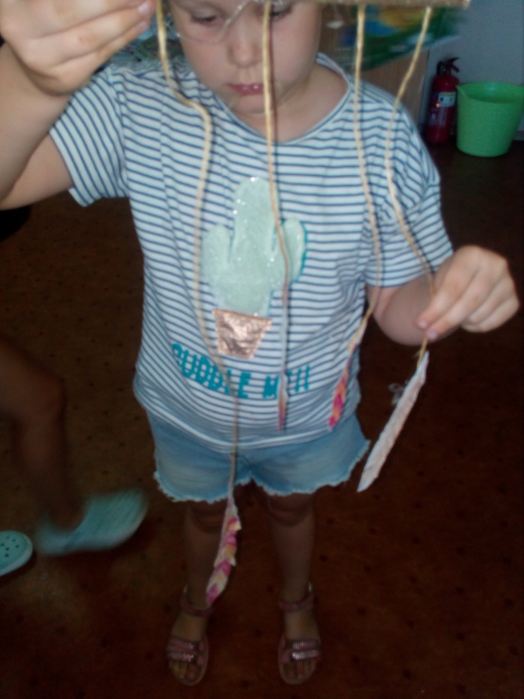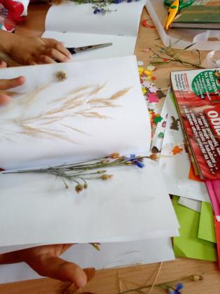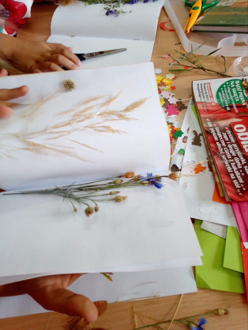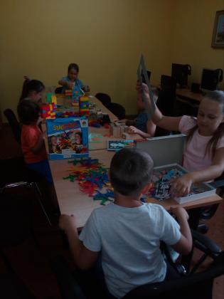 Pierwsze spotkanie rozpoczęło się od spaceru wokół budynku biblioteki, podczas którego dzieci zbierały różne rośliny. Następnie wyszukiwano nazwy zebranych kwiatów i ziół w atlasach i przewodnikach. Później starannie wysuszone rośliny dzieci wklejały do zeszytów. Każdy uczestnik na koniec dwudniowych zajęć mógł pochwalić się pięknym wakacyjnym zielnikiem. Na następne spotkanie dzieci przyniosły swoje klocki, korzystały też z puzzli i klocków przygotowanych w bibliotece. Przez dwie godziny dzieci wykazywały się pomysłowością i kreatywnością w układaniu różnych budowli. Podczas zabawy uczono się też dzielenia i współdziałania. W czasie kolejnych zajęć dzieci wykonywały ozdobne papierowe piórka na patyczku. Każdy z uczestników stworzył swoją paletę barw, którą pokolorował piórka. Gotową ozdobę każde dziecko mogło zabrać i powiesić w swoim pokoju.