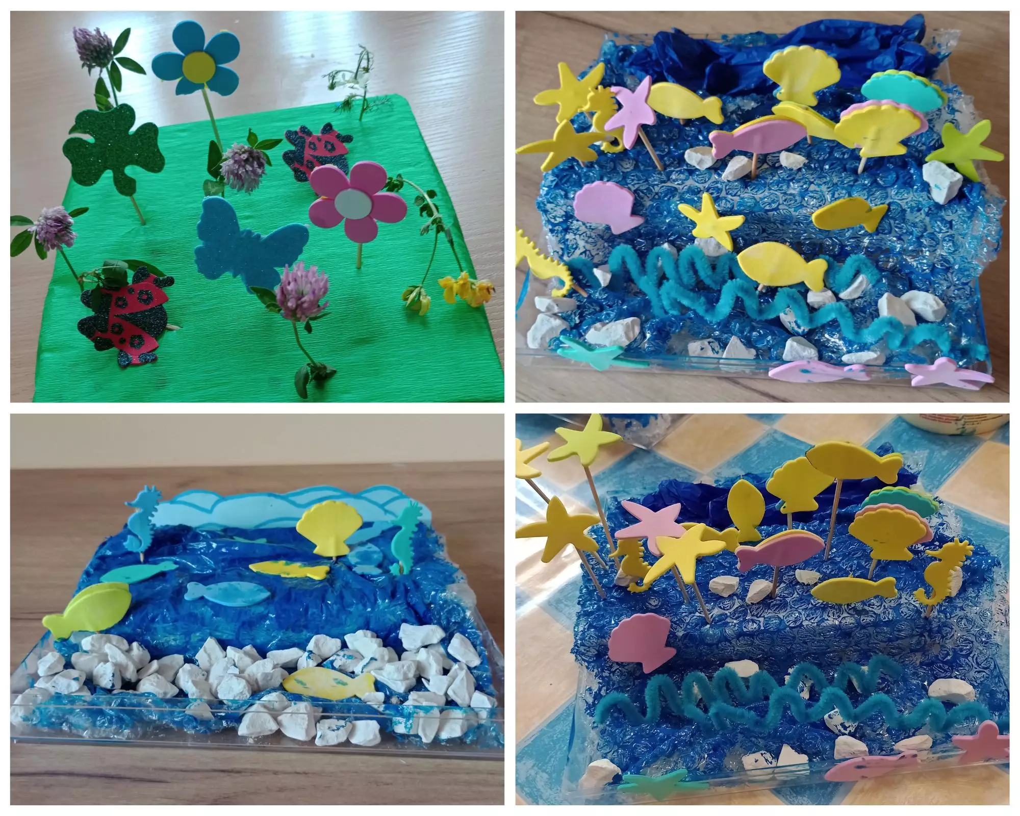 Makiety mórz i łąki, wykonane przez uczestników zajęć.