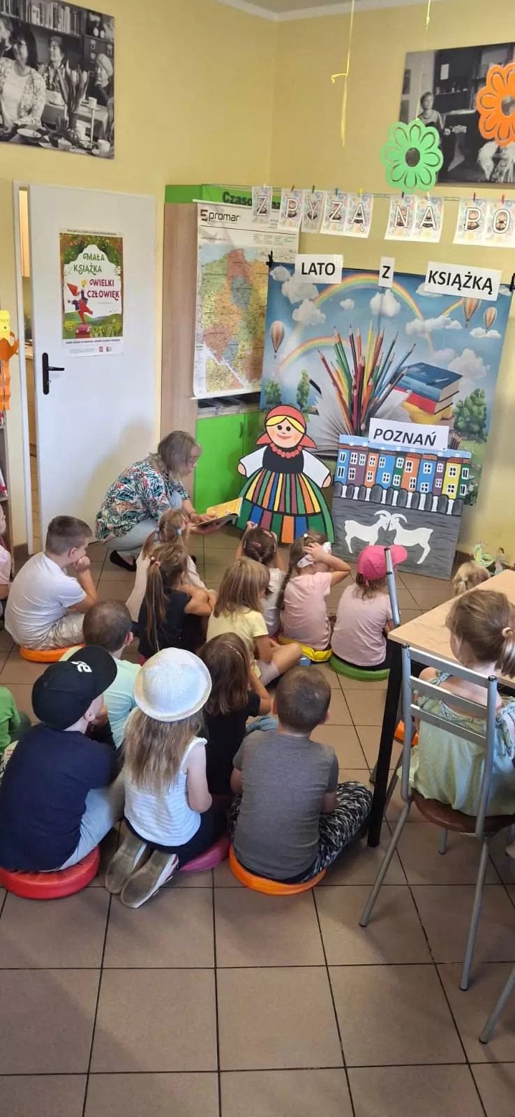 Nieocenionym towarzystwem i inspiracją była Pyza – bohaterka książki Hanny Januszewskiej. Wspólnie podróżowaliśmy po różnych regionach i miastach Polski, poznając charakterystyczne stroje, miejsca, zwyczaje, a także związane z nimi legendy i podania. Dzieci przygotowały własną mapę podróży, brały udział w grach, pracach plastycznych, wspólnym czytaniu oraz zabawach integracyjnych.