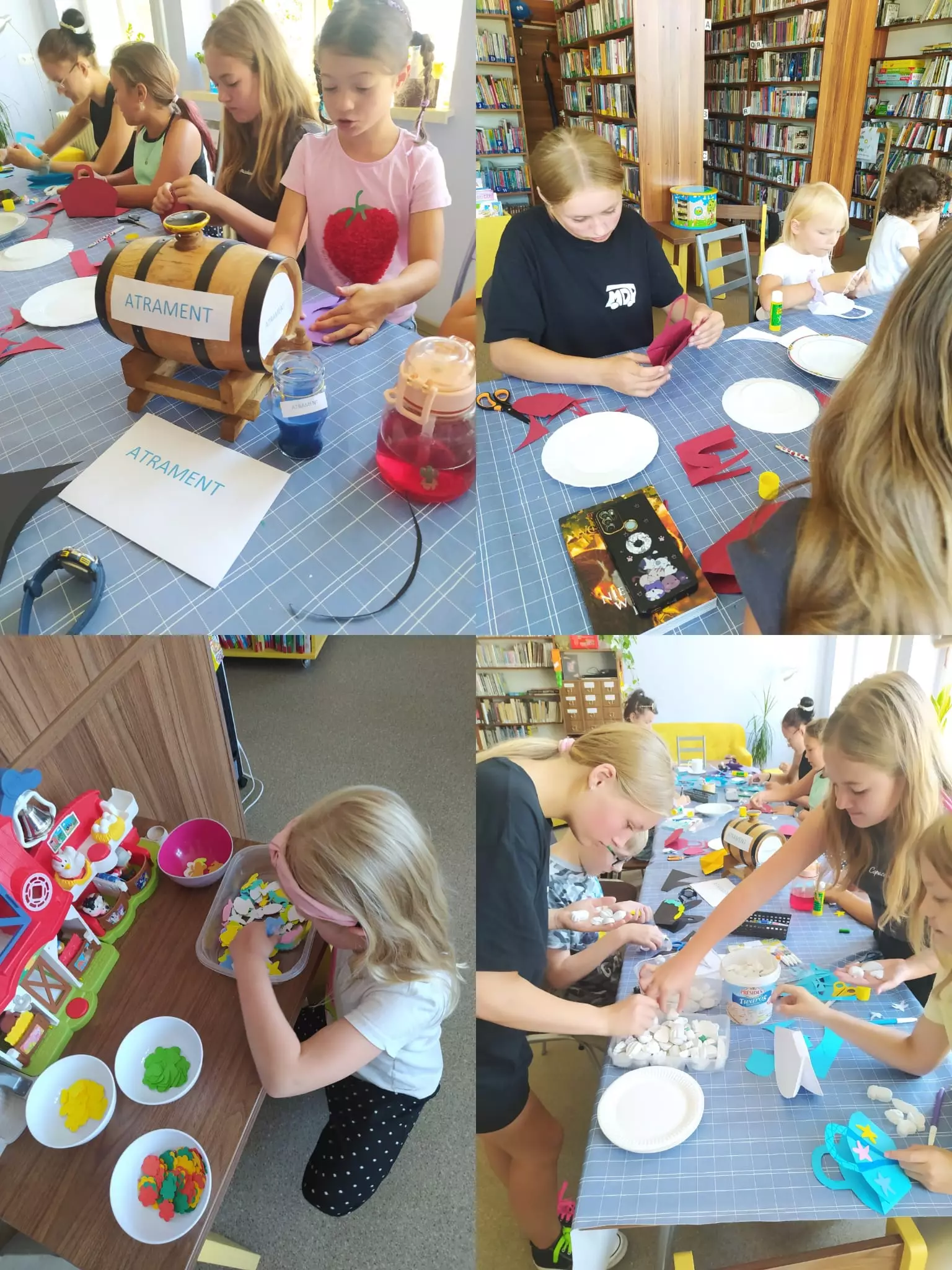 W minioną środę w bibliotece w Gwoździanach, na zajęciach literacko-plastycznych uczestnicy wysłuchali kolejnego opowiadania z książki Jana Brzechwy "Podróże Pana Kleksa - Wyspa Aptekarska".
