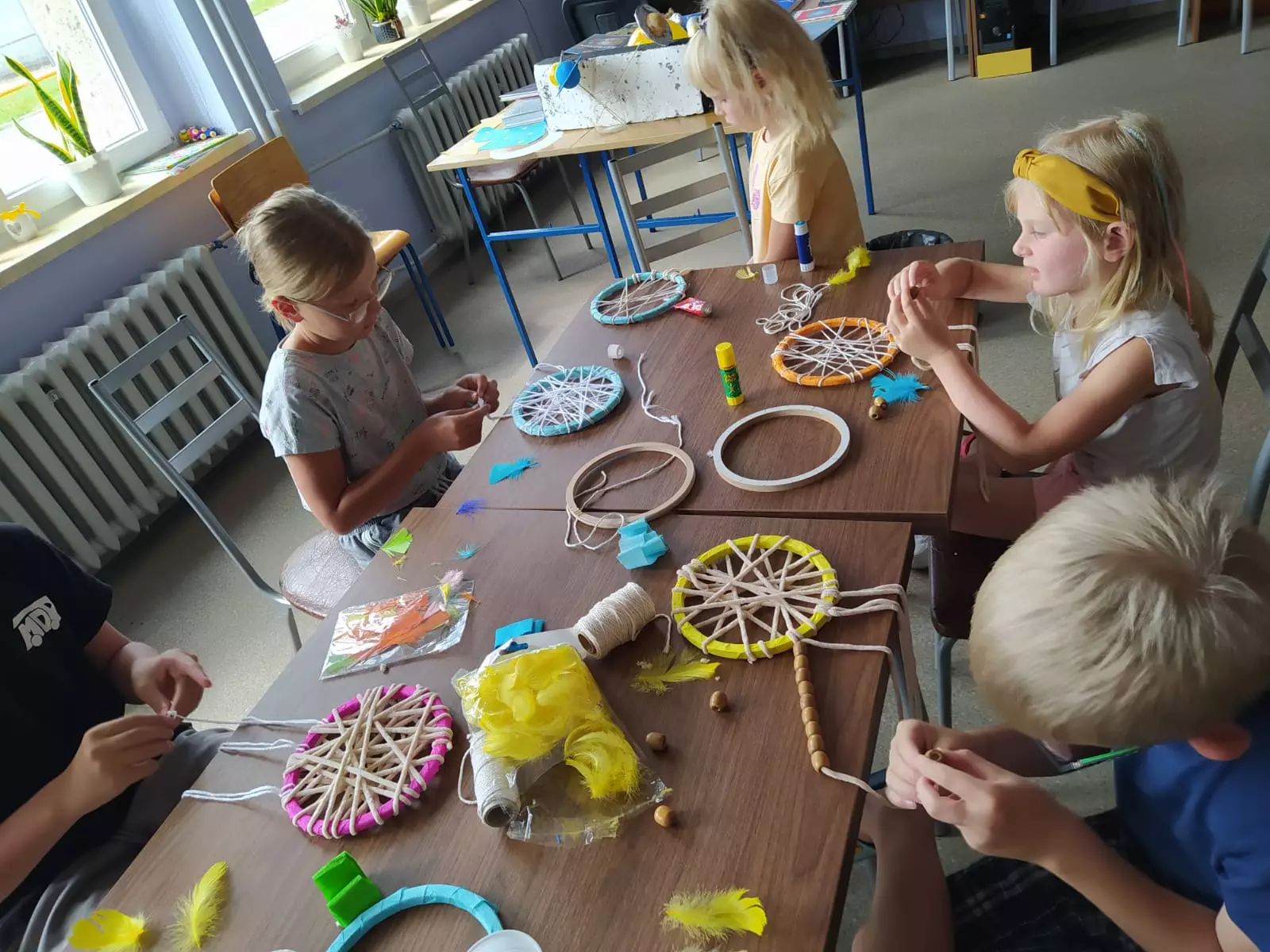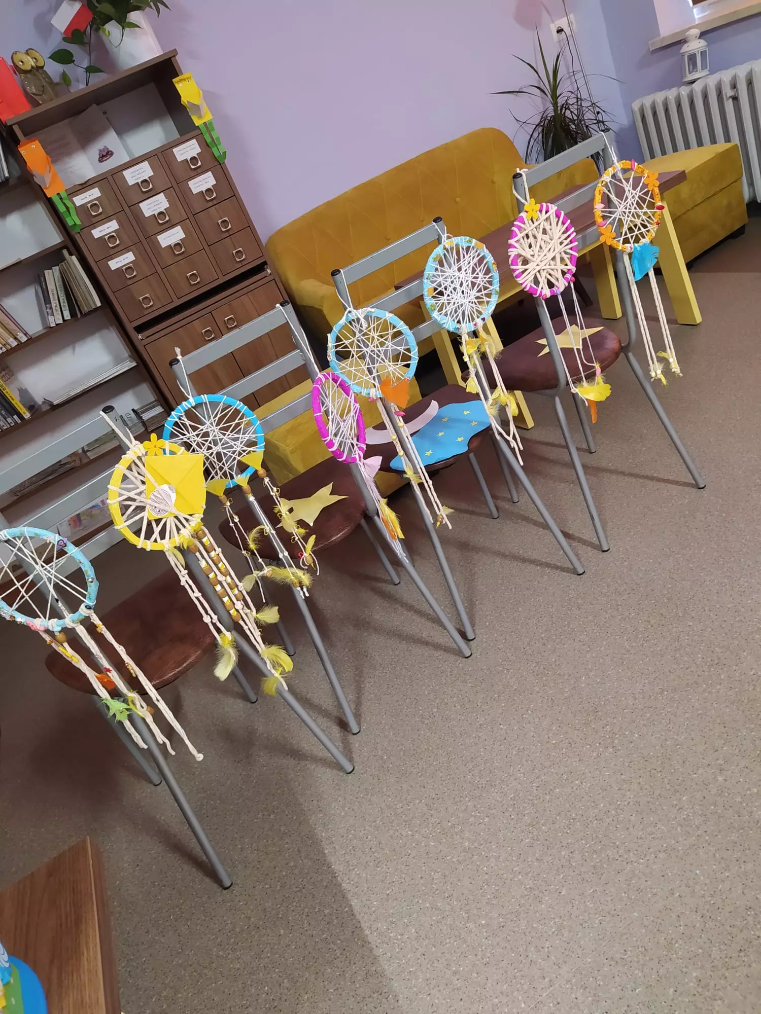Następnie dzieci wysłuchały opowiadania o snach z książki pt. "Dżungla snów" Anny Knakkergaard. Wykonano "łapacze snów", które ozdobiono w pióra, koraliki, cekiny i inne cudeńka, by łapać nocne mary.