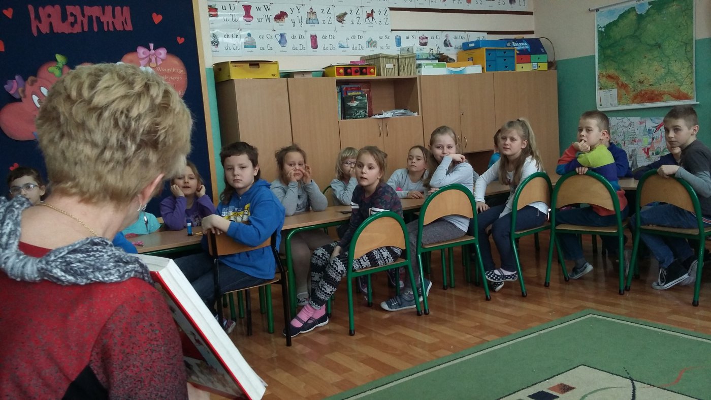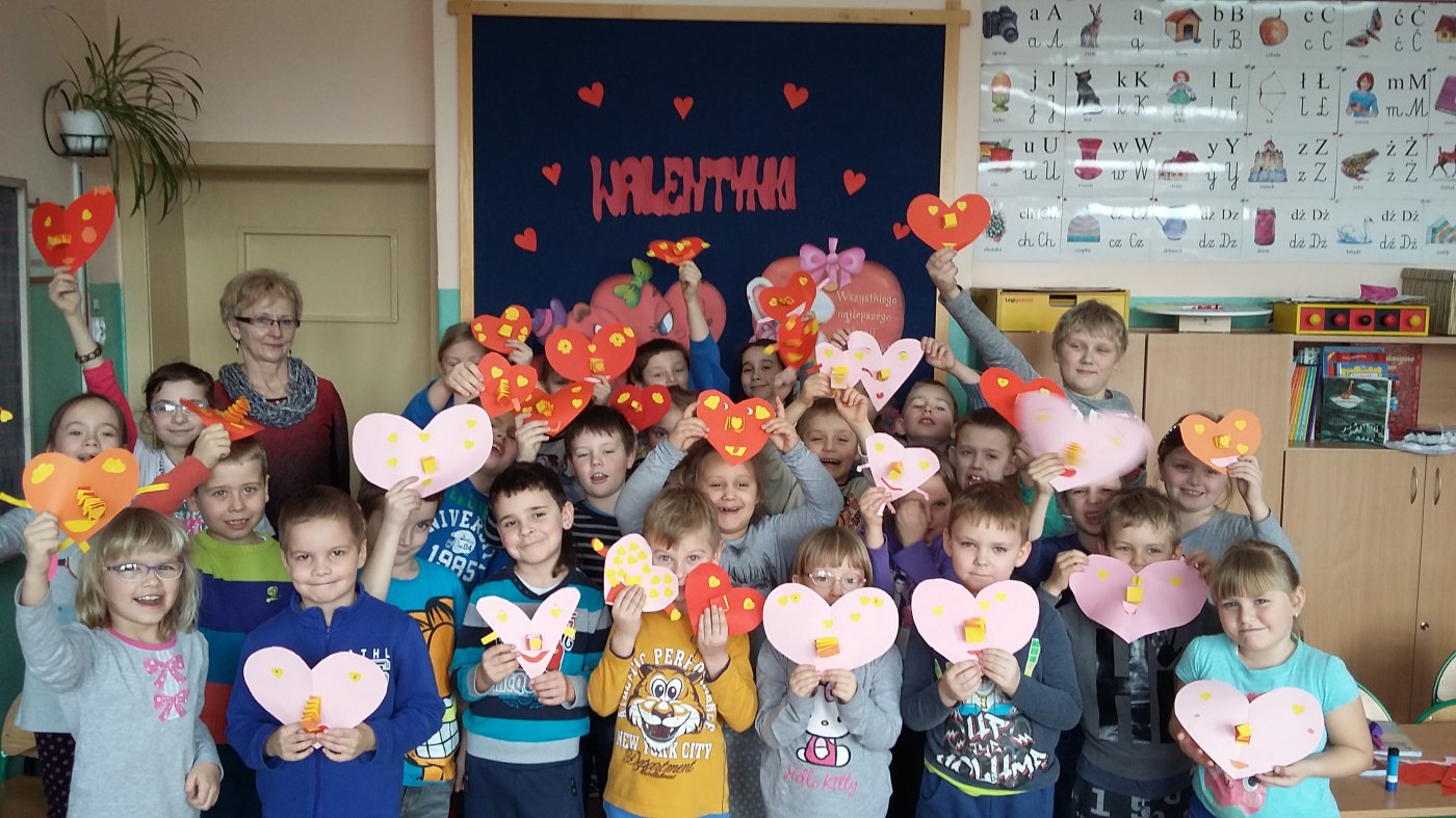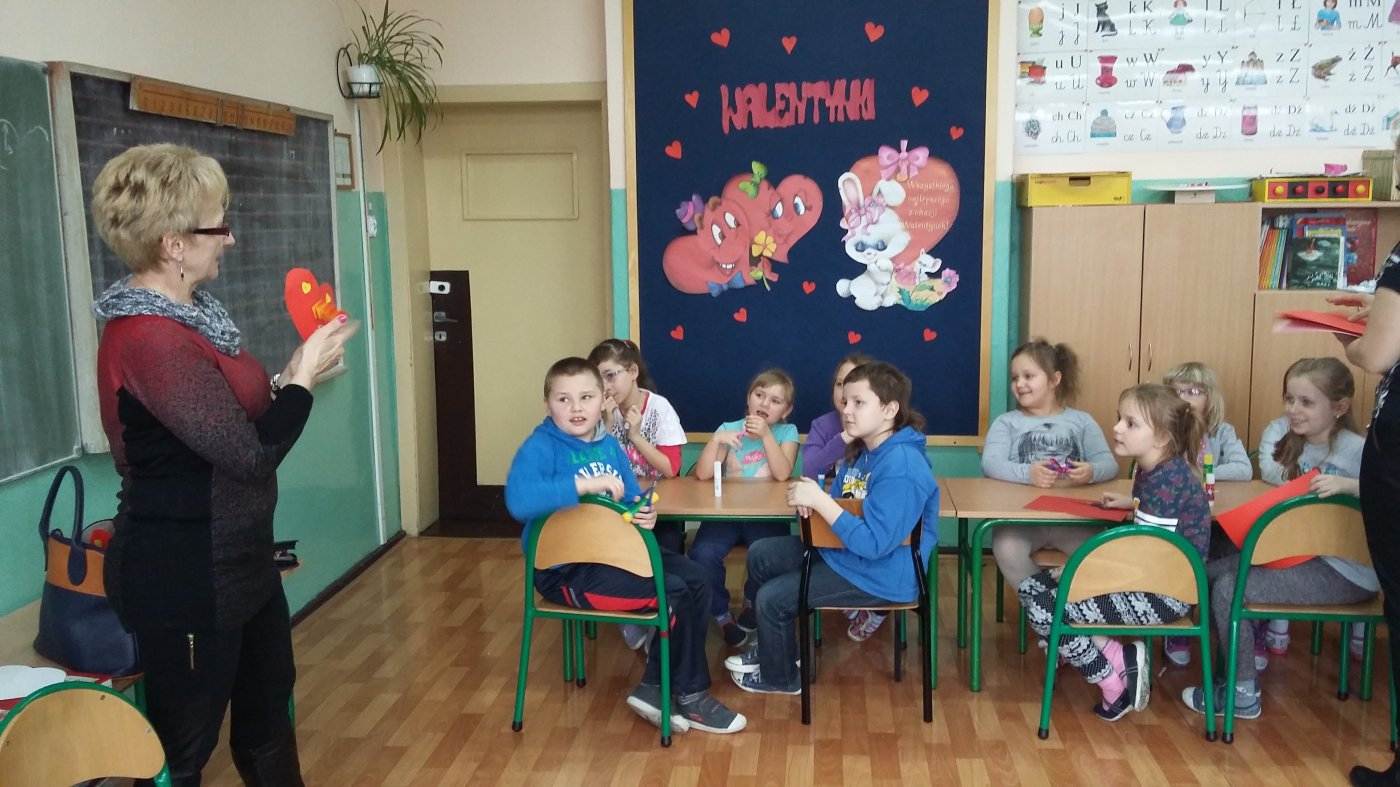 Z okazji Walentynek pani bibliotekarka Jadwiga Kukowka na zaproszenie pani Iwony Michalak-Małek- wychowawczyni klasy I
