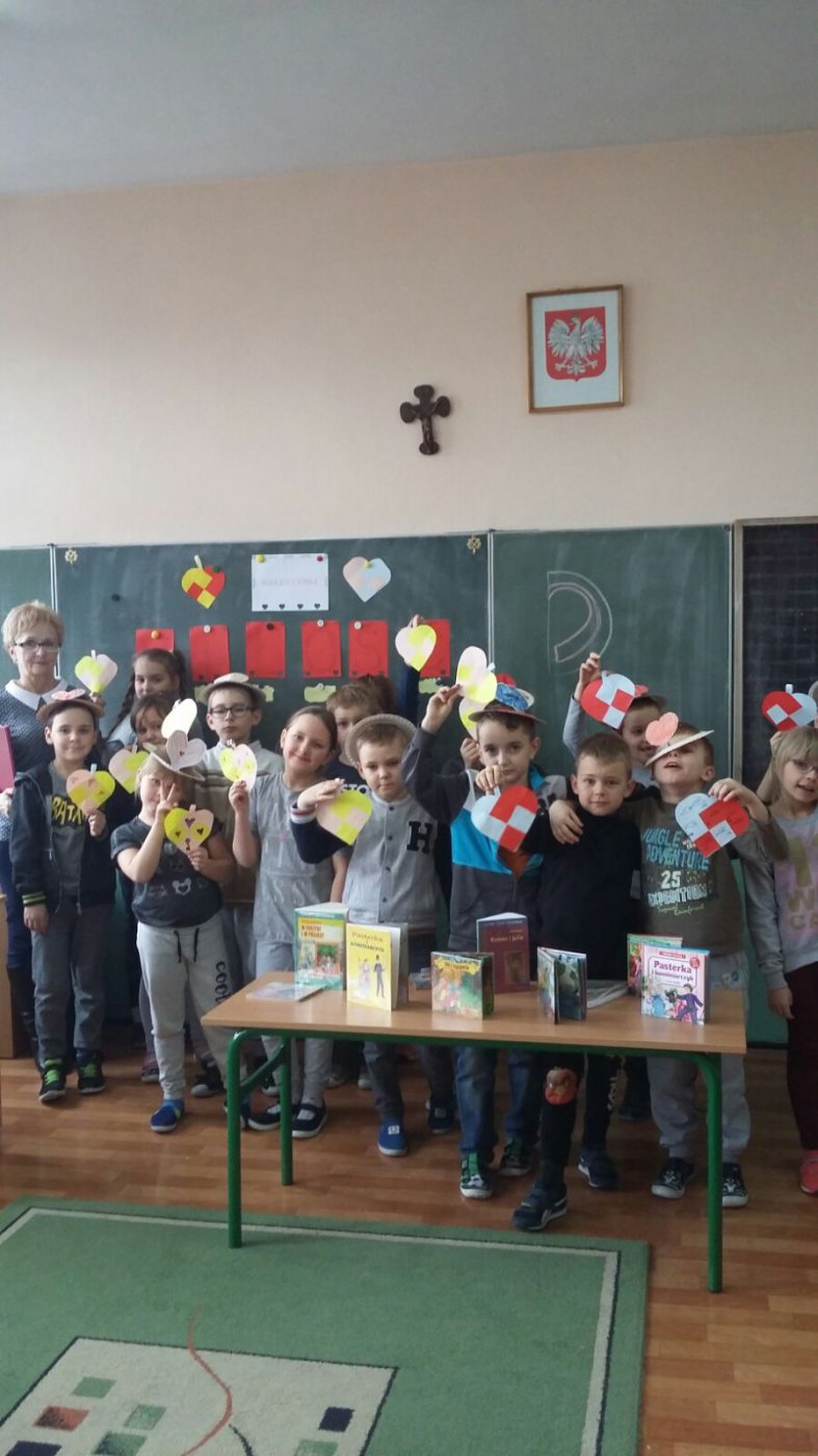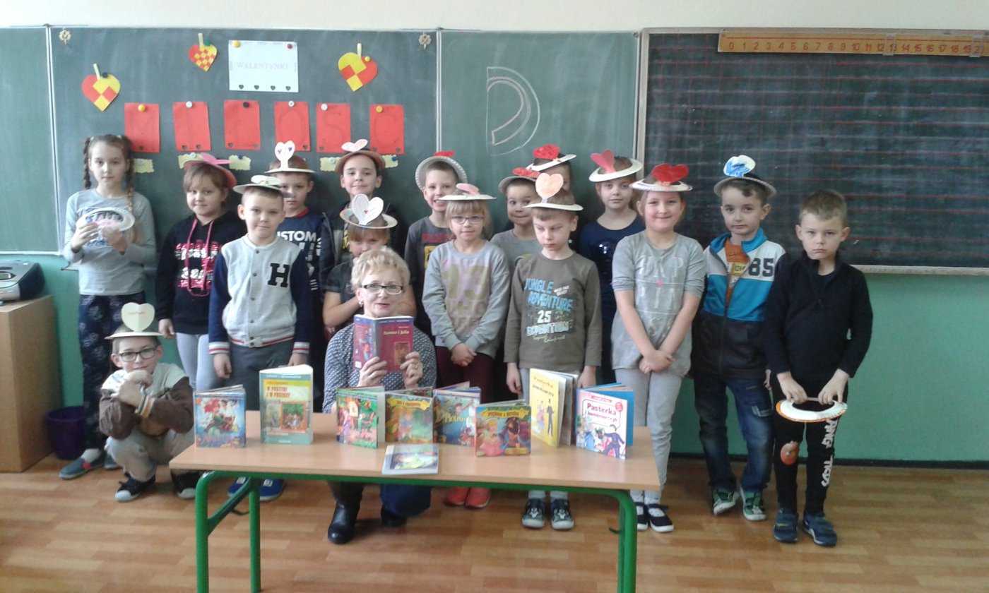 Z okazji "WALENTYNEK" bibliotekarka Jadwiga Kukowka odwiedziła uczniów kl. II Szkoły Podstawowej w Gwożdzianach, dla których przygotowała lekcję biblioteczną.