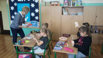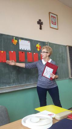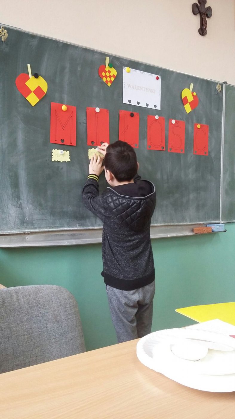 Podczas zajęć uczniowie przybliżyli sobie legendę o św. Walentym oraz historię powstania Dnia Zakochanych. W ramach ćwiczeń szukali słów opisujących osobę zakochaną oraz łączyli w pary bohaterów znanych im bajek i książek. Dzieci wykonały również walentynkowe korony- serca, oraz serduszka wykonane metodą origami dla swojej ulubionej osoby.
