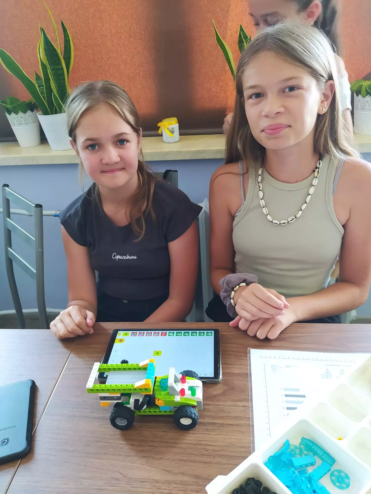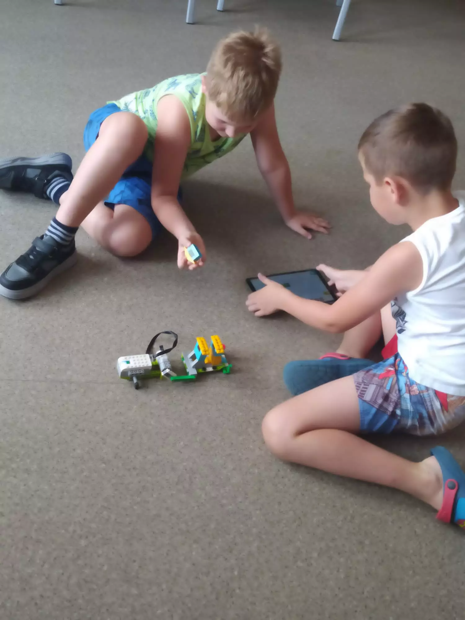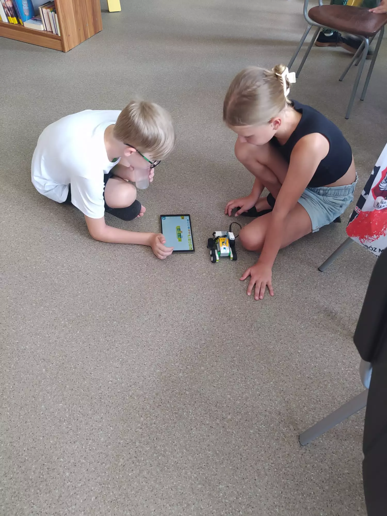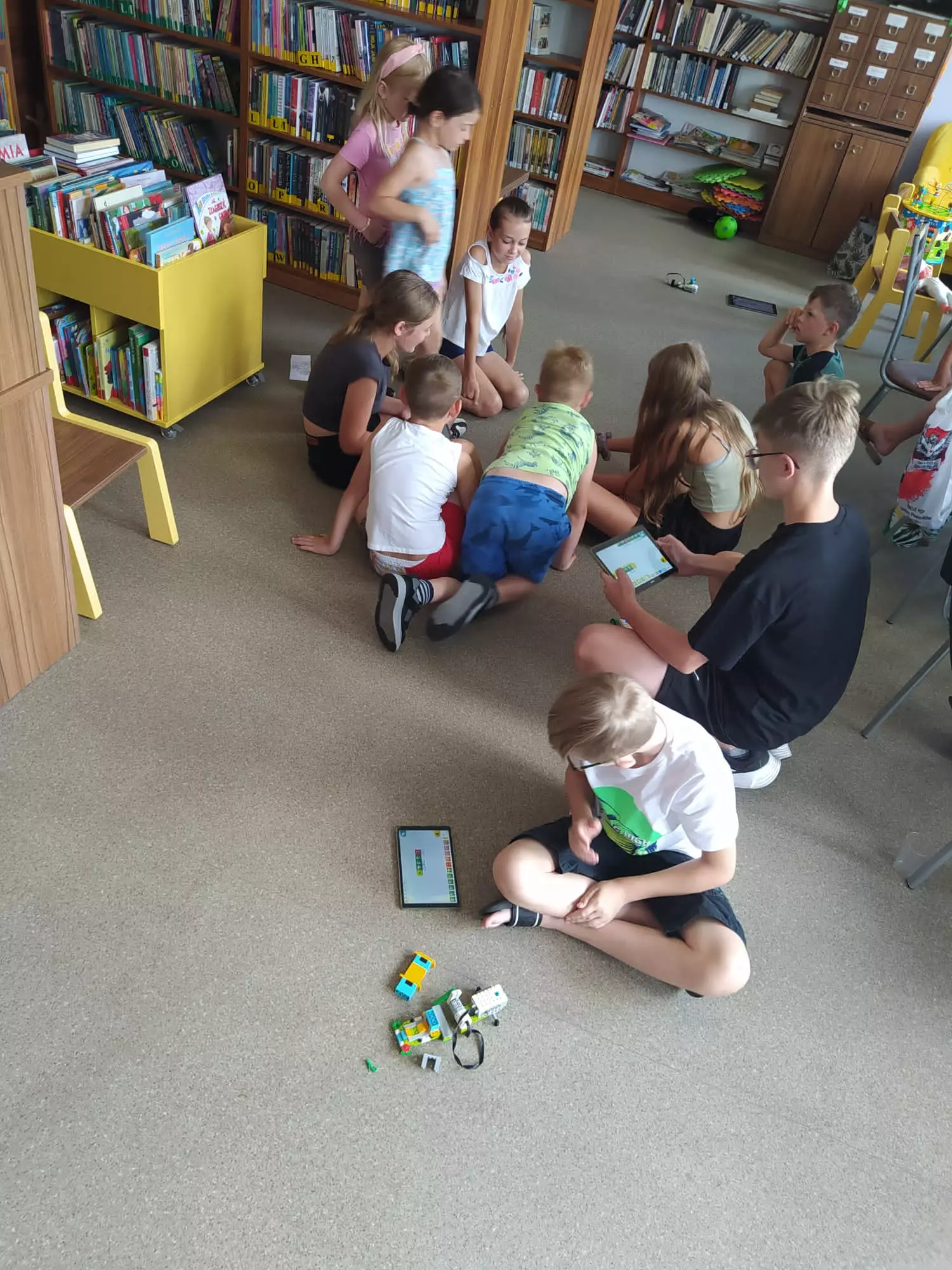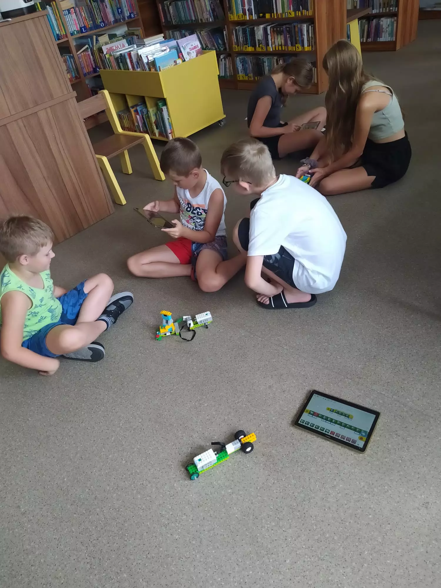 Uczestnicy składają z klocków lego pojazdy.Chłopaka składa samochód z klocków lego.Dwóch chłopaków siedzi na podłodze i uruchamia pojazd złożony z klocków.Dziewczynka i chłopak na tablecie programują pojazdy złożone z klocków.Dziewczyny prezentują pojazd złożony z klocków.Dziewczyny jeżdżą samochodem złożonym z lego w tle dwóch chłopców ze swoimi pojazdami.Dzieci siedzą na podłodzi i jeżdżą pojazdami z lego.Dzieci siedzą na podłodzi i jeżdżą pojazdami z lego.Uczestnicy składają pojazdy z klocków lego.Dzieci siedzą na podłodzi i jeżdżą pojazdami z lego.Kolaż zdjęć z zajęć lego.Kolaż zdjęć pojazdów.Kolaż zdjęć z zajęć lego.
