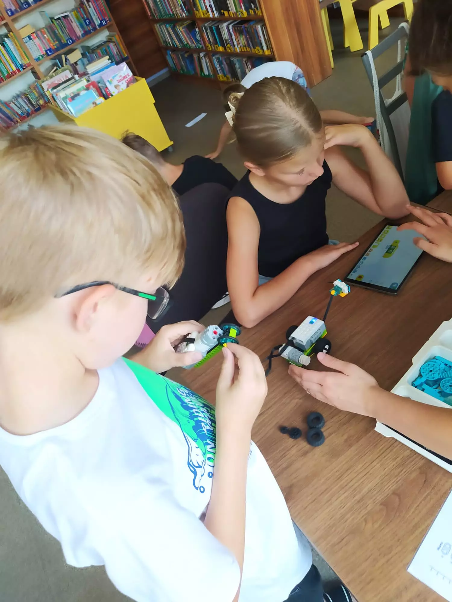 W poniedziałek w bibliotece w Gwoździanach odbyły się warsztaty Akademii Małego Inżyniera z "Robotyki LEGO".