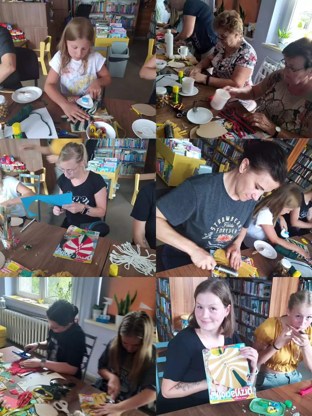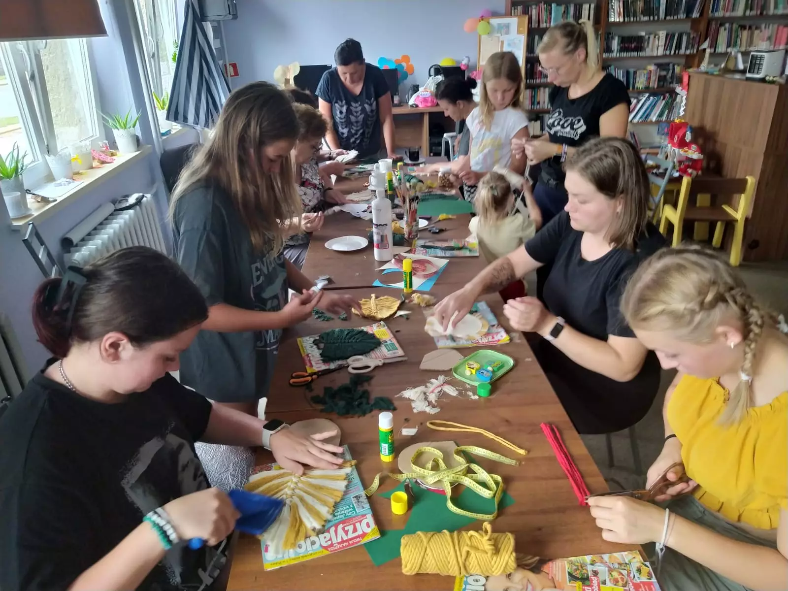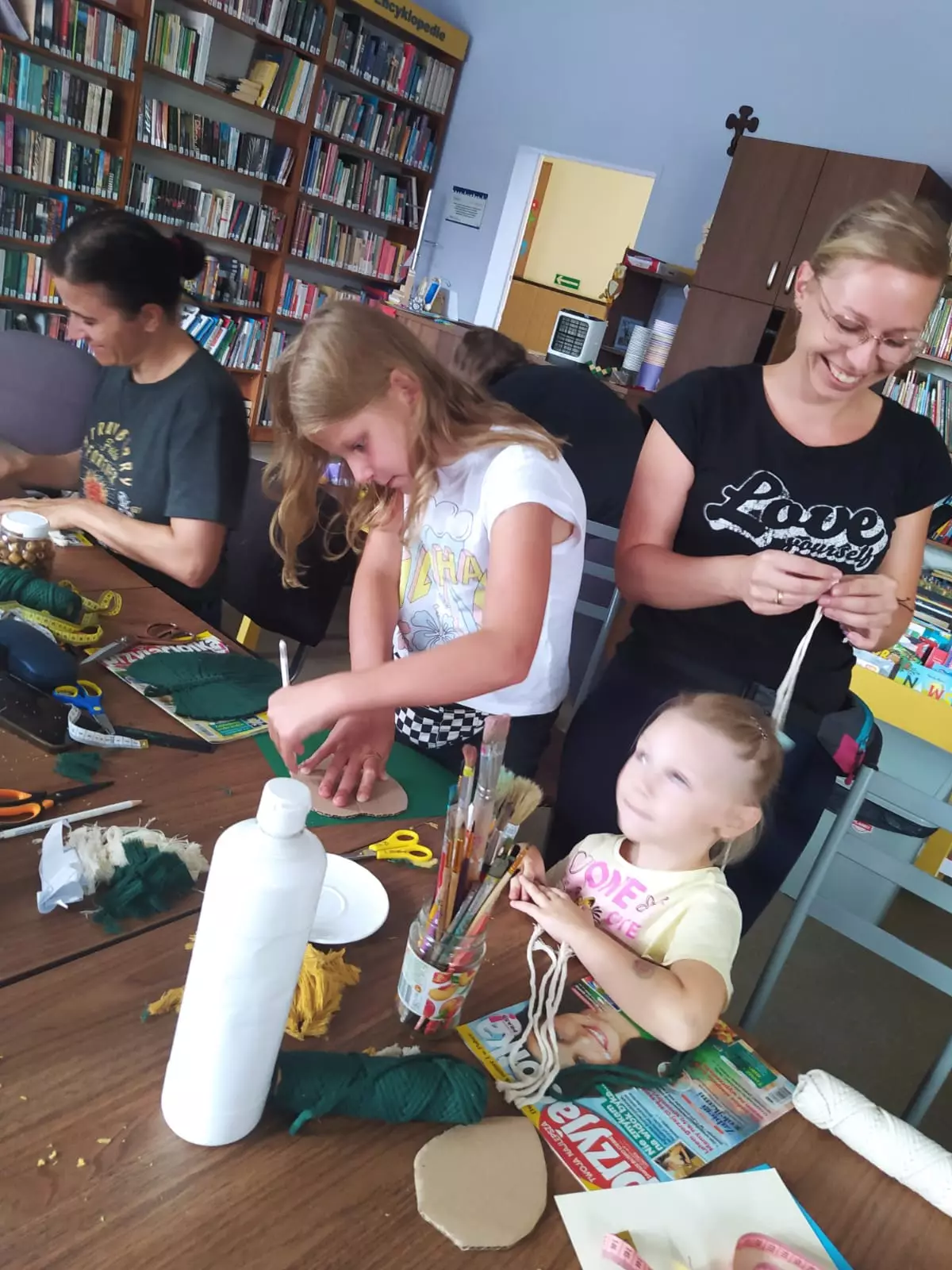 W piątkowe popołudnie w bibliotece w Gwoździanach odbyły się warsztaty rękodzielnicze. Uczestnicy wykonali kolorowe liście za pomocą techniki splotów i węzłów makramy.