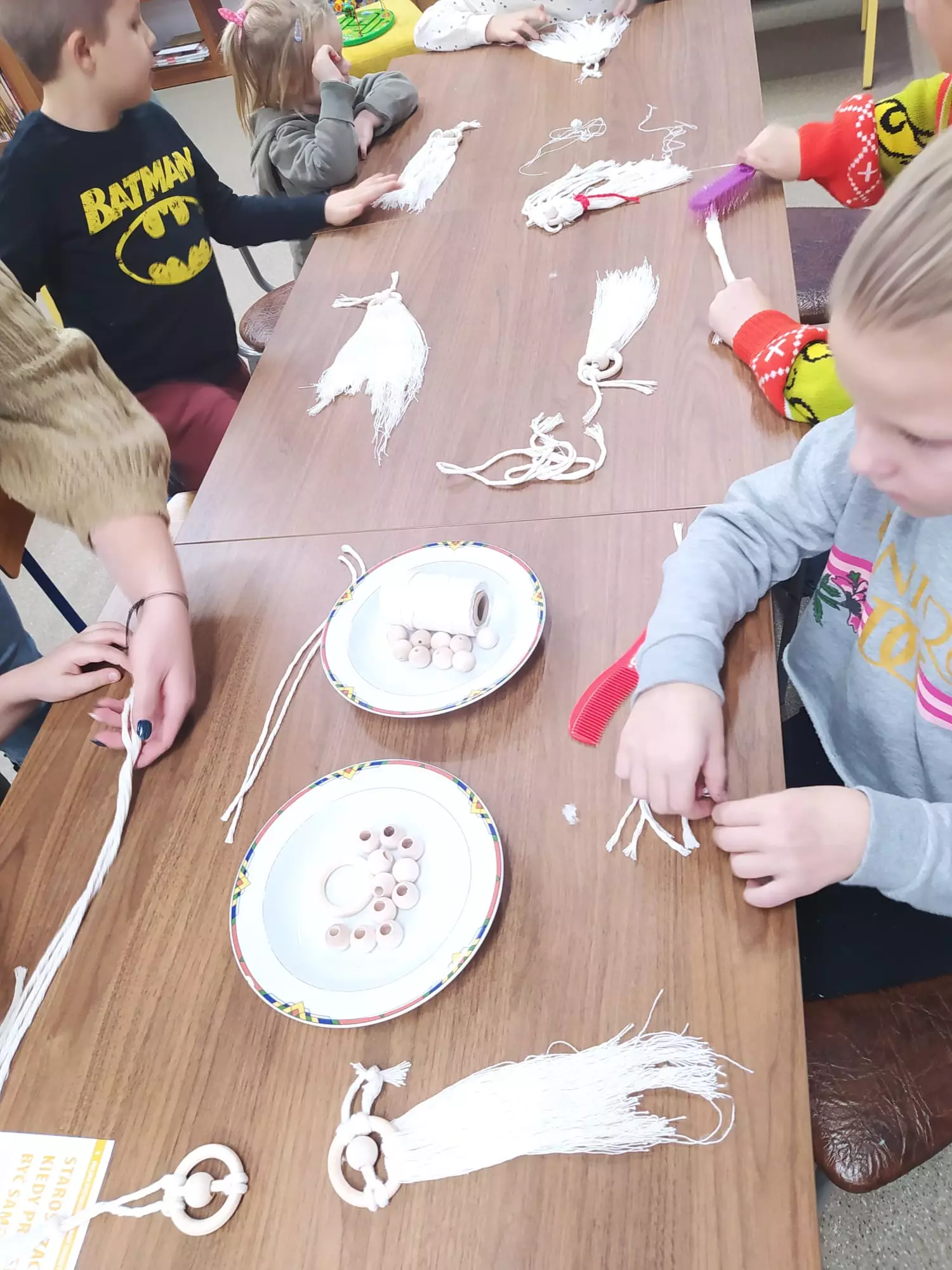 Na piątkowych warsztatach w bibliotece w Gwoździanach uczestnicy wykonali piękne aniołki ze sznurka techniką makramy. Będą one z pewnością zdobiły niejedną choinkę.