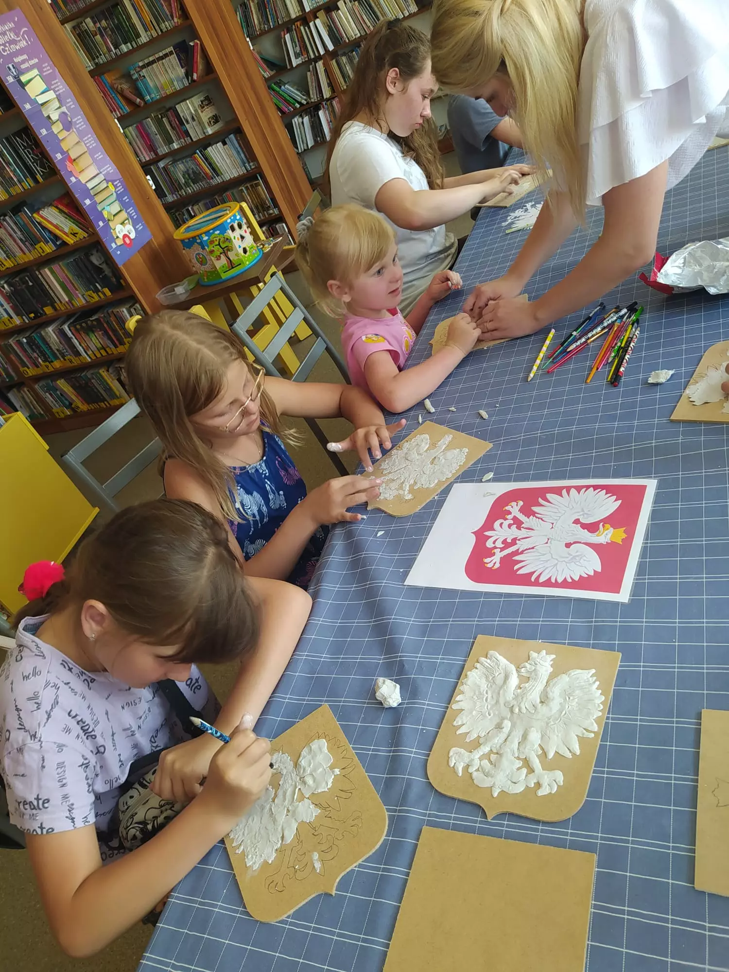 „Godło Polski” – pod takim tytułem odbyły się warsztaty plastyczne dla dzieci i młodzieży zorganizowane w ramach projektu „Poznaj bliżej polskie symbole narodowe" w bibliotekach w Pawonkowie, w Gwoździanach, Kośmidrach oraz w szkole w Łagiewnikach Małych.