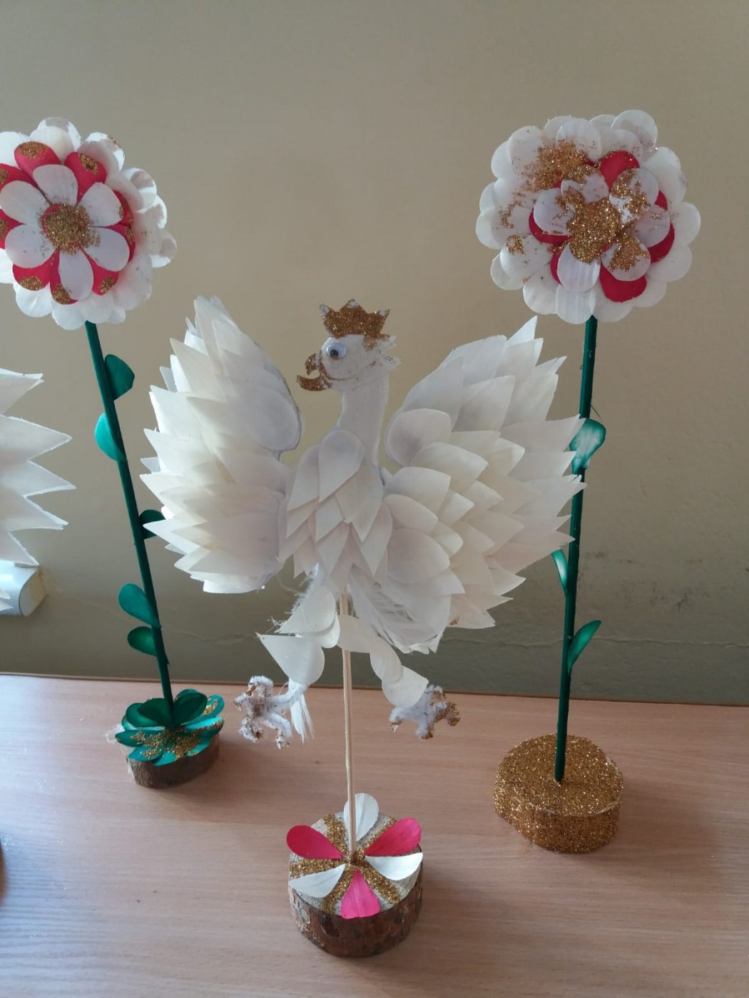 Instruktorzy, którzy przyjechali do nas z Osikowej Doliny z Koziegłów, opowiedzieli krótko o wytwarzaniu wiórków i tegorocznym jubileuszu. Wykonaliśmy orła i kwiatek w barwach narodowych. W spotkaniu udział wzięły zarówno dzieci, jak i dorośli, którzy swoje prace zabrali do domu. Oprócz osób z Lisowic byli także miłośnicy prac plastycznych z Gwoździan, Kośmider i Pawonkowa. Po skończonych zajęciach poczęstowaliśmy się ciastem i sokiem.