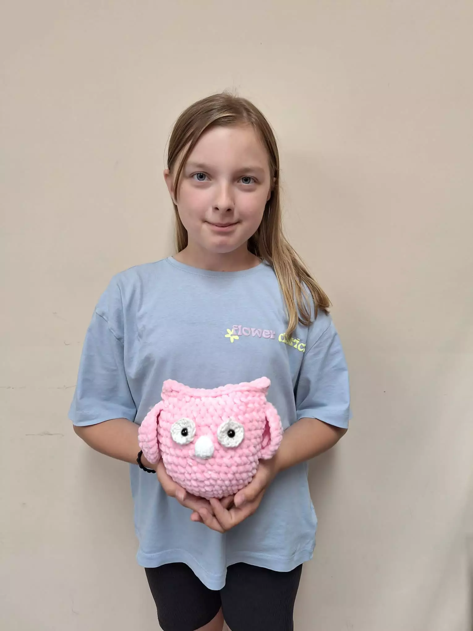 Na naszych ostatnich zajęciach szydełkowania, młode uczestniczki wykonały urocze sówki i kwiatki. Na następnych warsztatach planujemy skupić się na tworzeniu letnich toreb, które będą idealnym dodatkiem na wakacyjne dni.