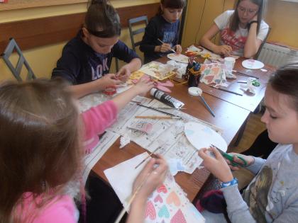 Przed Wielkanocą w Bibliotece w Pawonkowie odbyły się warsztaty plastyczne. Uczestnicy wykonali wiele pięknych dekoracji: malowali pisanki, metodą decoupage ozdabiali drewniane jajka i zajączki. Przepiękne ozdoby wszyscy chętnie zabierali do domu.
