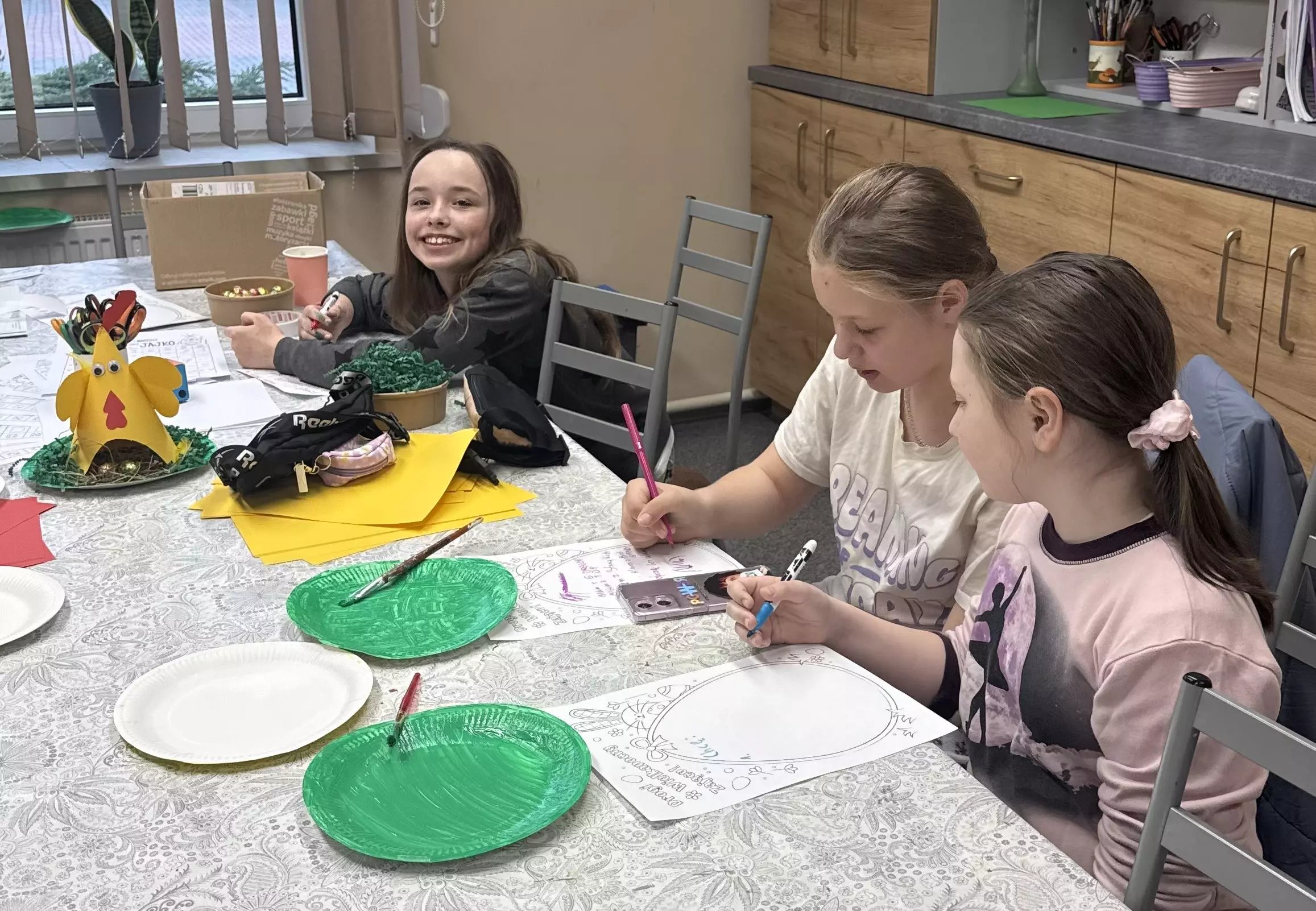Uczestniczki zajęć piszą list do zajączka.