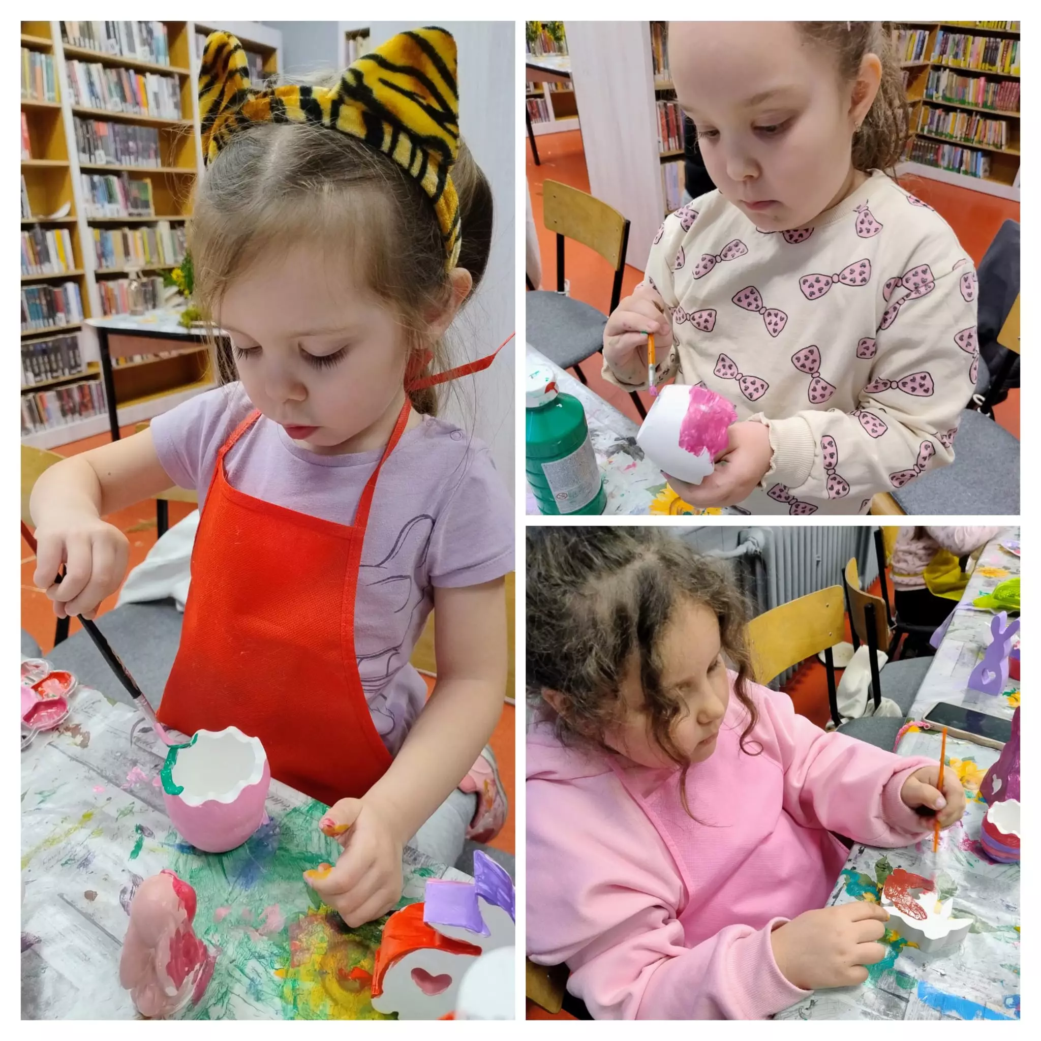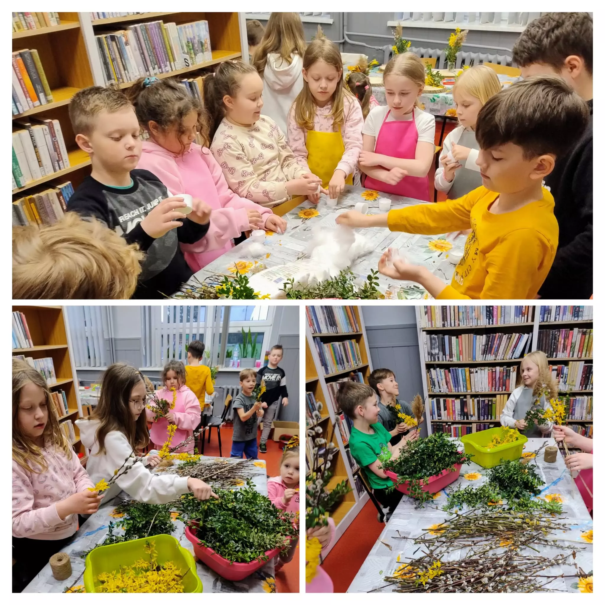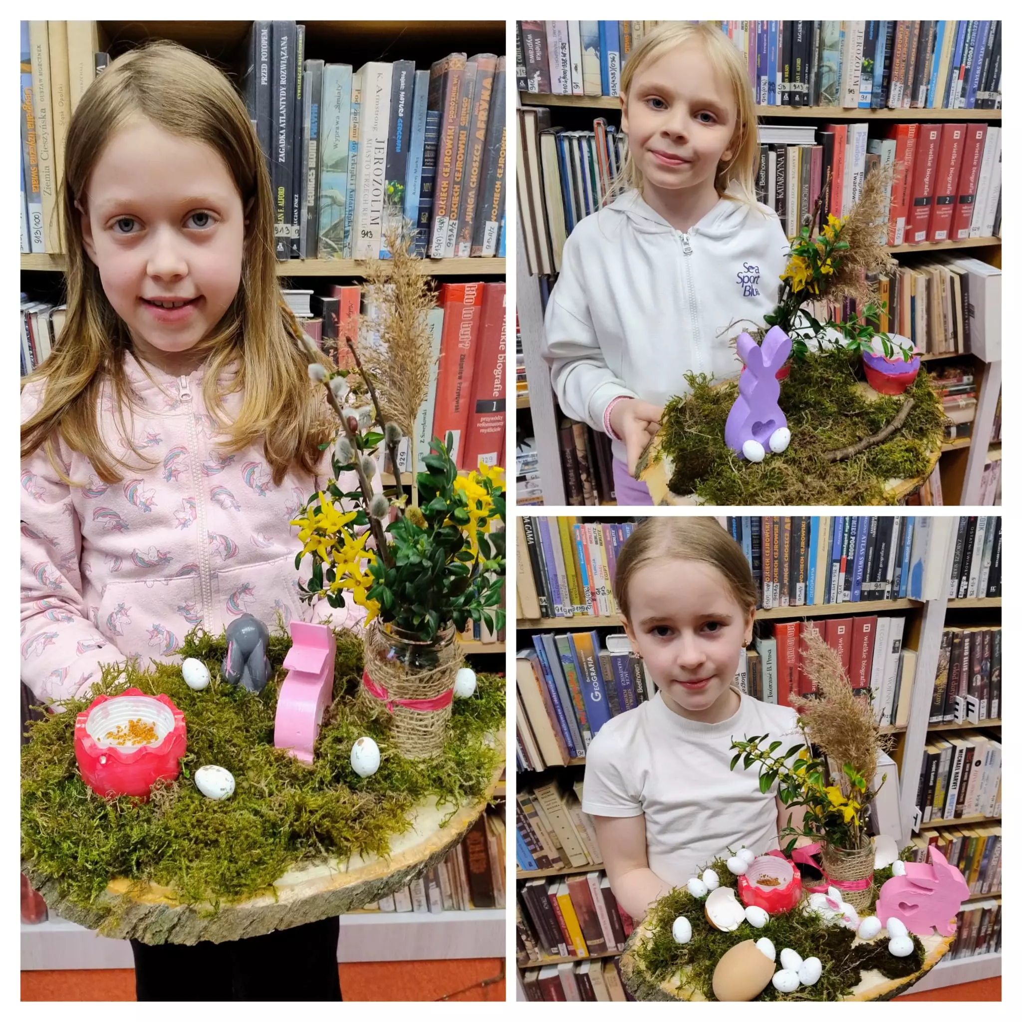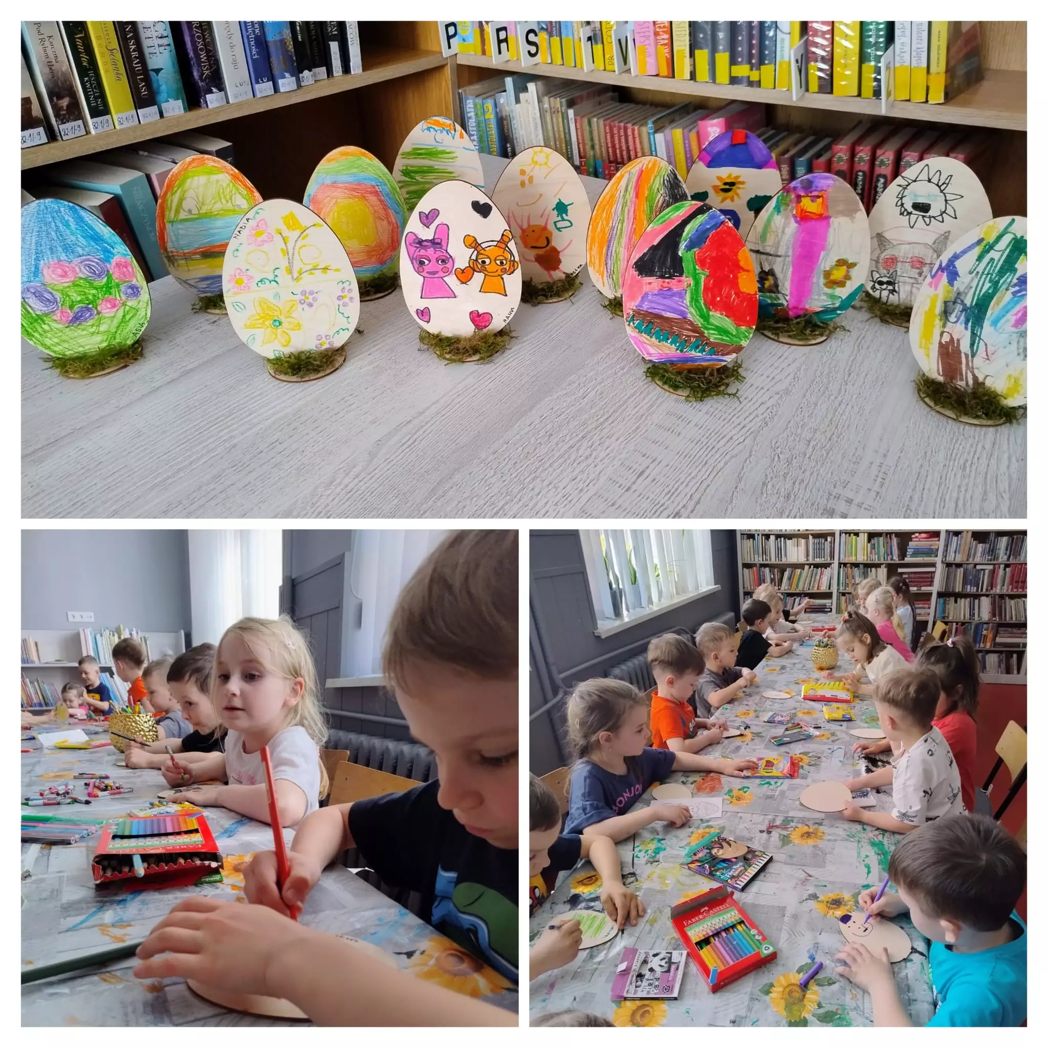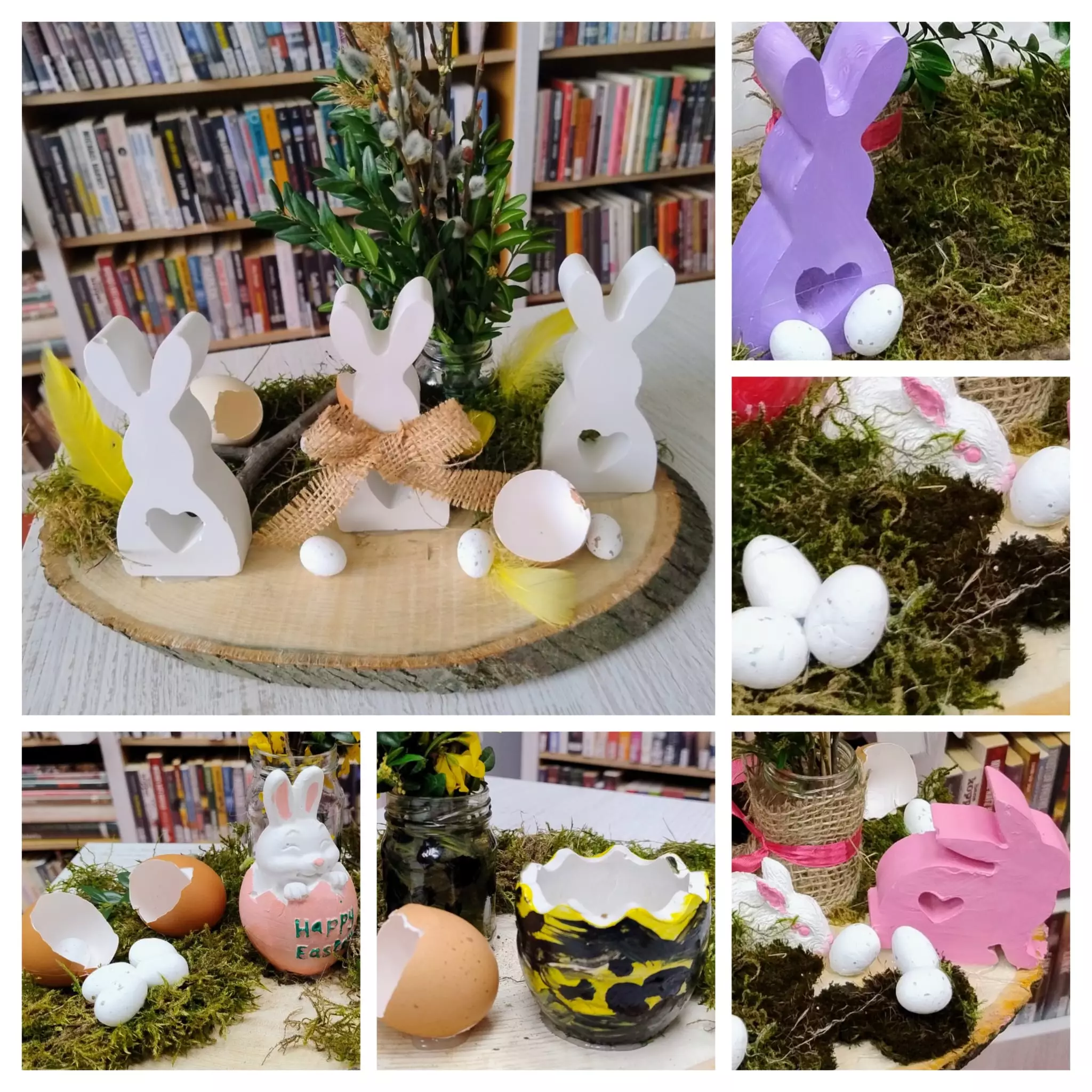 Na ostatnich zajęciach literacko-plastycznych w bibliotece w Łagiewnikach Małych rozpoczęliśmy przygotowania do Świąt Wielkanocnych. Rozmawialiśmy o tradycjach i zwyczajach nadchodzących Świąt oraz wykonywaliśmy stroiki świąteczne. Każdy był wyjątkowy, jedyny w swoim rodzaju Bibliotekę odwiedziły również przedszkolaki. Wysłuchały opowiadania "Myszonek wita wiosnę" autorstwa Riikki Jäntti, którego bohaterem jest myszka przedszkolaczek również przygotowująca się do Świąt Wielkanocnych. Dzieci wykazały się niesamowitą kreatywnością i stworzyły własne ozdoby świąteczne.