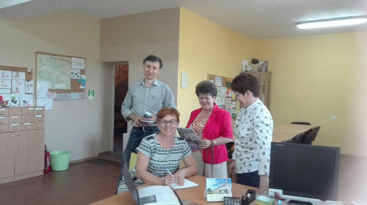 19 maja gościliśmy w Lisowicach Komisję Kultury, Sportu i Turystyki Rady Powiatu w Lublińcu, która zwiedziła LCSK, Muzeum Paleontologiczne oraz Bibliotekę. Z okazji tego spotkania bibliotekarka opowiedziała kilka szczegółów z działalności filii. Na pamiątkę goście otrzymali książkę pt. „Lisowice- Historia i współczesność”, podpisaną przez współautorkę Renatę Piosek. Komisja dokonała również wpisu do kroniki biblioteki.