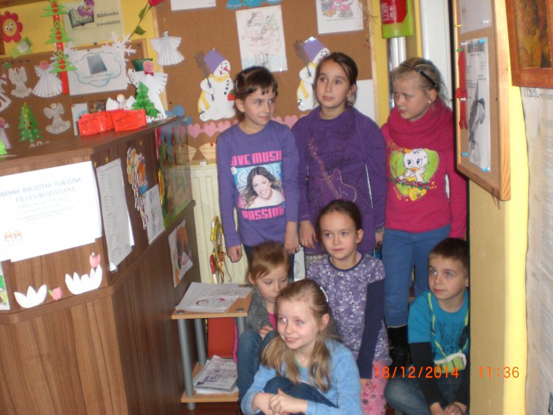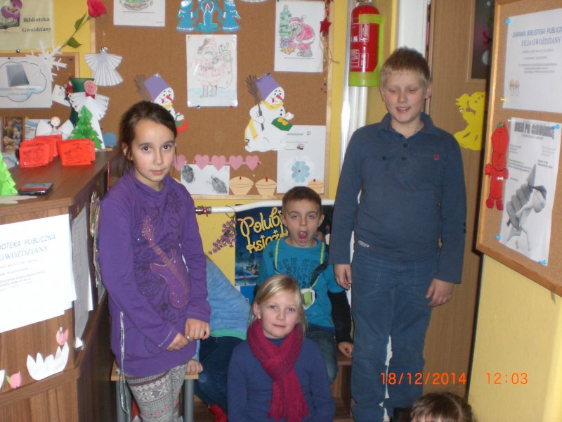 W dniu 18 grudnia uczniowie klas I-III Szkoły Podstawowej w Gwoździanach pod opieką pań wychowawczyń odwiedzili Bibliotekę Publiczną.