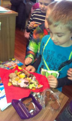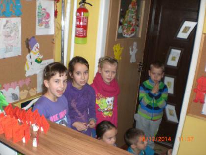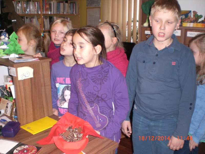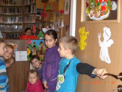 W świątecznym wystroju biblioteki dzieci śpiewały kolędy. Po pięknym występie zostały poczęstowane pierniczkami i słodyczami. Znalazł się też czas na wspólną zabawę.