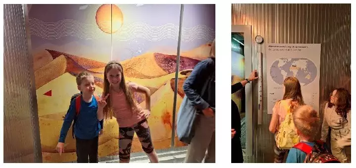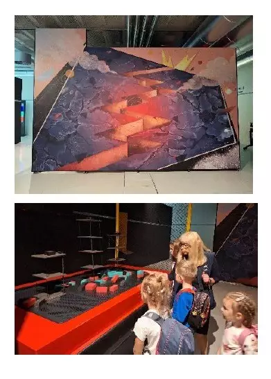 Zwiedzanie było podzielone na dwie części: część geologiczną i seans. Rozpoczęliśmy w dziesięcioosobowych grupkach, wraz z przewodnikiem, przechodziliśmy przez kolejne stanowiska, które w sposób ciekawy i nowoczesny wprowadziły nas w tajniki geologii naszej Ziemi. Jednym z ciekawszych stanowisk był symulator trzęsień ziemi, czy komory oddające warunki klimatyczne np. Antarktydy czy Sahary.