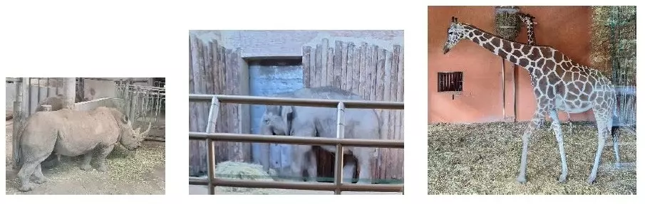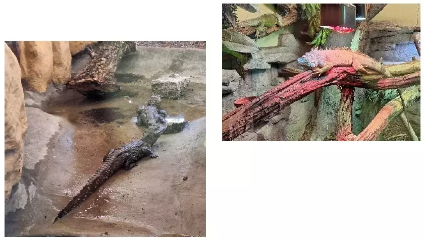 Trzy zdjęcia: Planetarium od strony wejścia głównego, kolisty hol główny i namalowane Słońce na suficie.Trzy zdjęcia z klatką schodową i drewnianymi przyrządami Mikołaja Kopernika.Malowidło z popękaną skorupą Ziemi i makieta budynków po trzęsieniu Ziemi, którą oglądają dzieci.Trzy zdjęcia z pokojem, w którym ludzie siedzą przy stoliku i oglądają stary telewizor. W ciemnym pomieszczeniu grupa ludzi dotyka model wnętrza Ziemi. Ręce wszystkich dotykają środka wnętrza Ziemi w formie żółtej półkuli.W środku ciemnego pomieszczenia wisi ogromny model kuli ziemskiej. Wokoło siedzą ludzie i patrzą na planetę Ziemię.W ciemny pomieszczeniu, za metalową kratą jest model miasta, a nad nim piorun wychodzący z metalowej rury.Dwa zdjęcia z dziećmi stojącymi przed dużą kamerą na statywie, w zielonym pomieszczeniu z trzema telewizorami.Dwa zdjęcia z dziećmi na tle obrazu z pustynią i z dziećmi patrzącymi na duży termometr na metalowej ścianie.W prostokątnej wnęce, oświetlonej trzema lampami, widać małą trąbę powietrzną.Dwa zdjęcia z kapsułami do siedzenia i ekrany przy biurku oraz obraz przedstawiający kosmos.Dwa zdjęcia z posągiem Mikołaja Kopernika trzymającego kulę i patrzącego ku niebu oraz obraz przedstawiający galaktykę w ruchu.Dwa zdjęcia z kolejką linową i trzema wieżowcami z Osiedla Tysiąclecia.Trzy zdjęcia z pawiem, pandą małą i dwoma małymi zwierzętami podobnymi do kangurów.Dwa zdjęcia orłem Bielikiem oraz z białym i czarnym bocianem.Trzy zdjęcia z jaszczurką, wężem wodnym i żółwiem wygrzewającym się pod lampą.Dwa zdjęcia z pływającymi pingwinami i chłopcem pokazującym planszę z pingwinami.Dwa zdjęcia z małpą trzymającą się gałęzi i dwiema małymi małpkami szukającymi jedzenia w trawie.Dwa zdjęcia akwarium z morskim jeżowcem i kolczastą rybą.Dwa zdjęcia ze stadem danieli oraz z wielbłądami i lamami przy paśniku.Dwa zdjęcia z krokodylami i z waranami.Trzy zdjęcia z nosorożcem, słoniem i żyrafą.