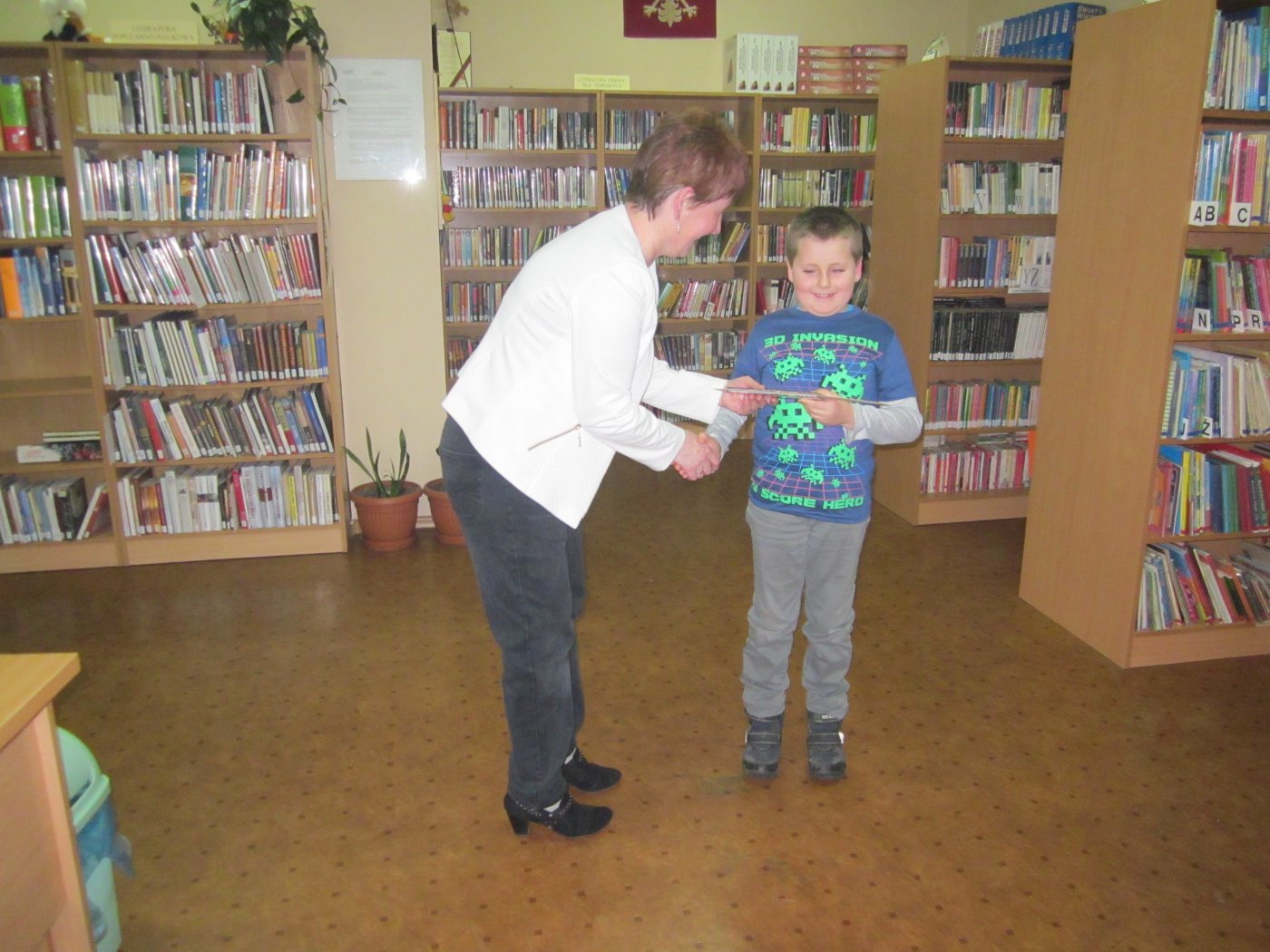 W bardzo miłej atmosferze, przy herbatce i kawie wręczono nagrody książkowe. Bibliotekarka Jolanta przedstawiła również krótkie sprawozdanie z działalności biblioteki i statystykę wypożyczania.