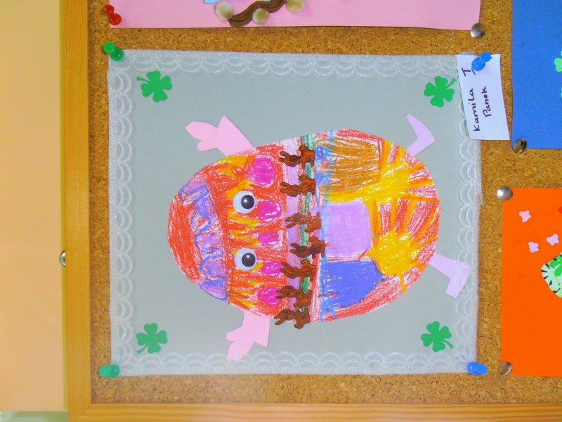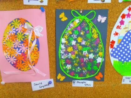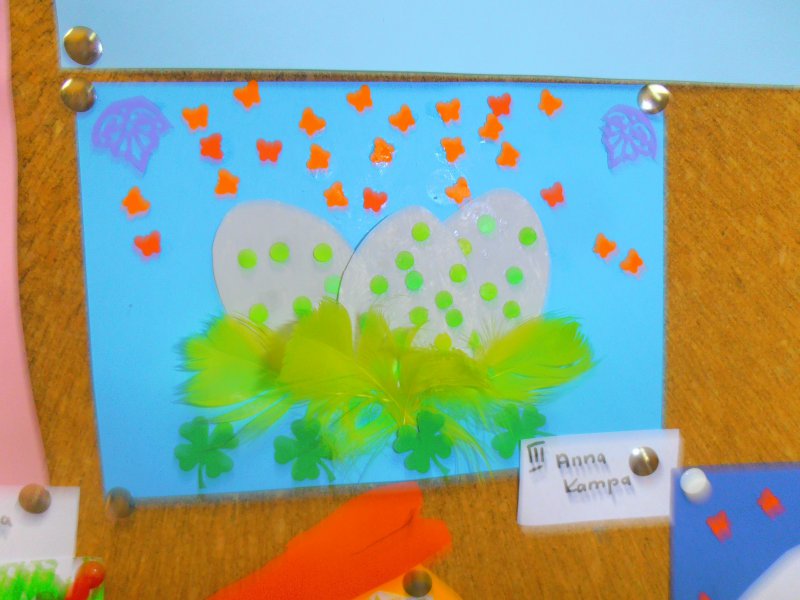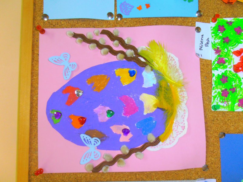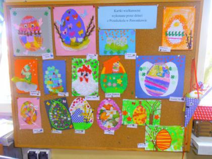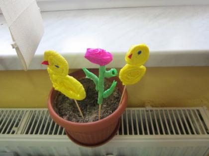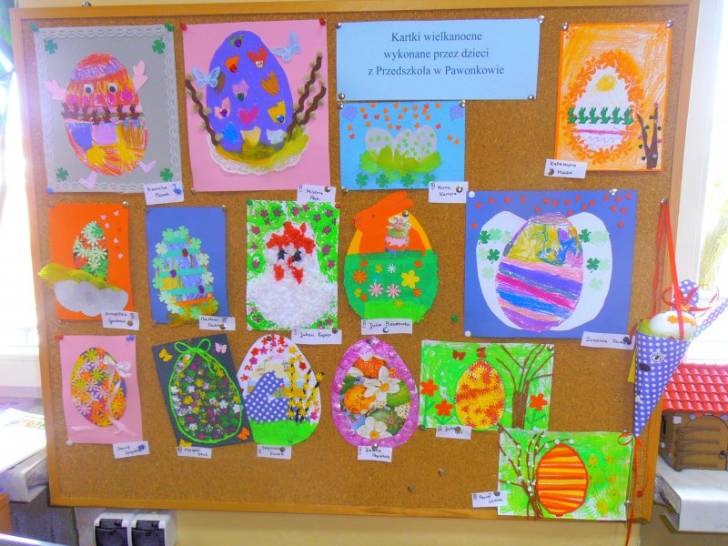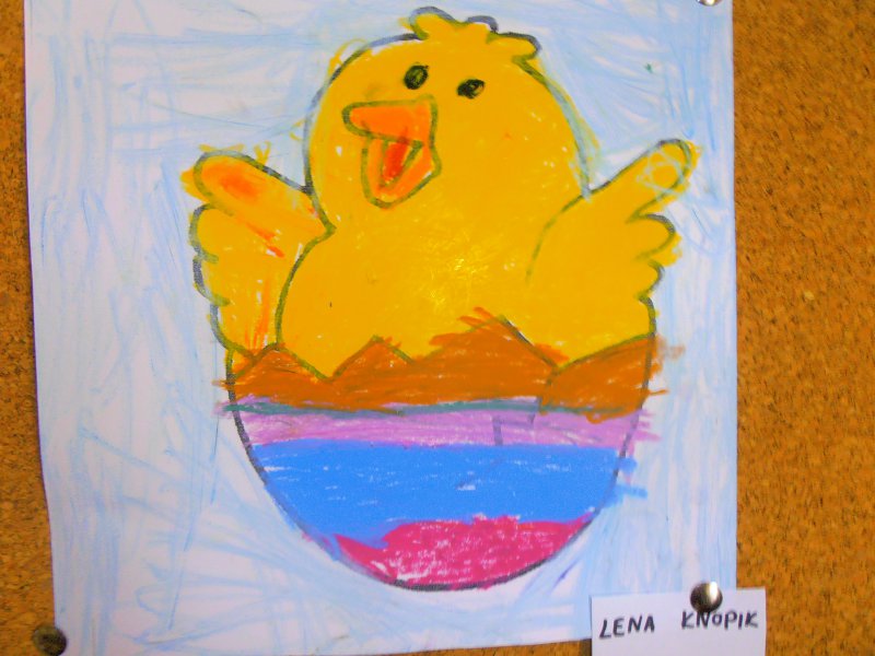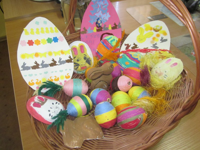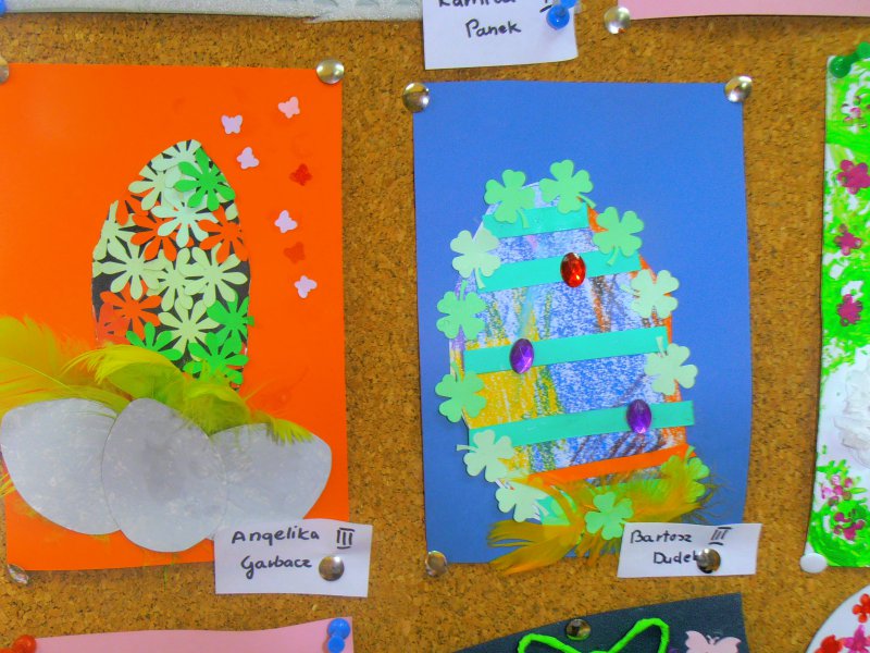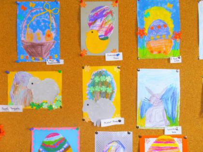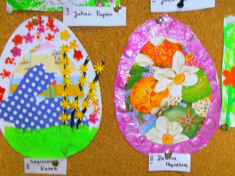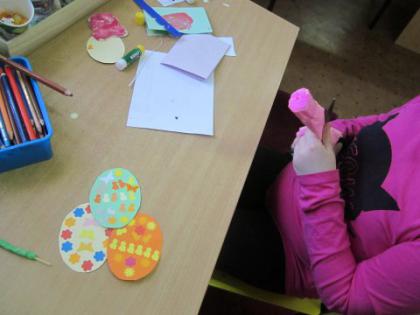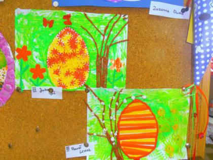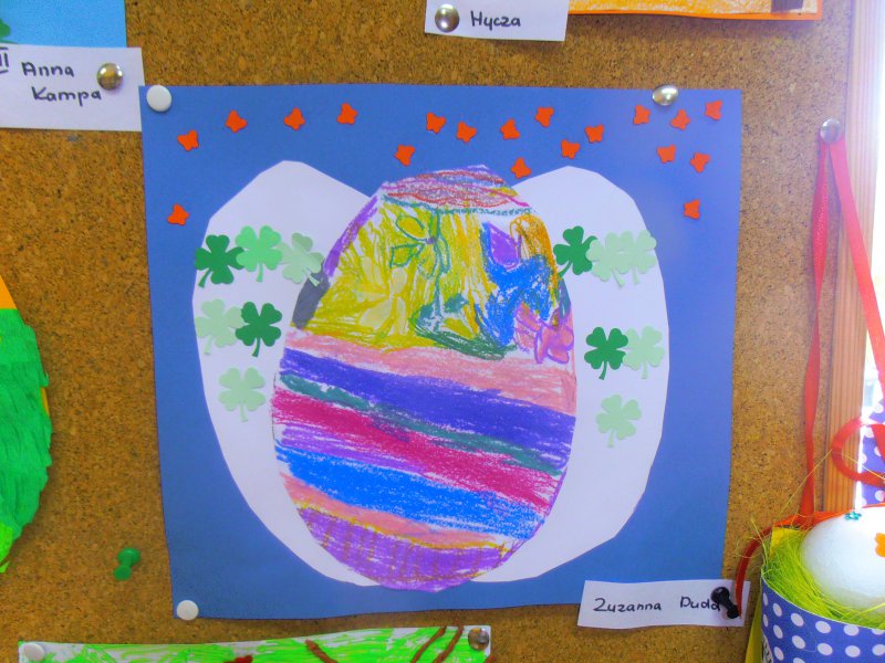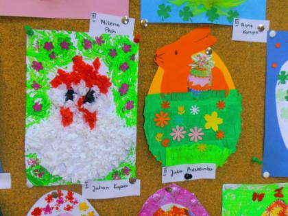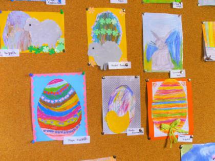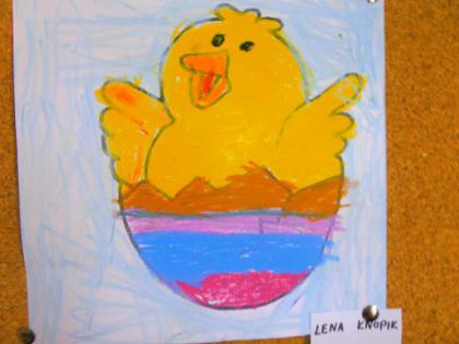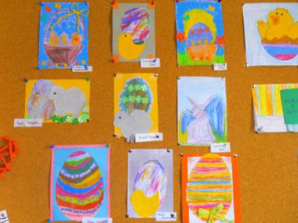 Jak co roku przed Świętami Wielkanocnymi dzieci wykonywały różne ozdoby świąteczne. Do wykonania prac wykorzystano foremki z gliny, wycięte duże jajka z kartonu, które ozdabiano. Z żółtej bibułki powstały urocze kurczaczki. Kto chciał mógł wykonać kartkę świąteczną z życzeniami.
