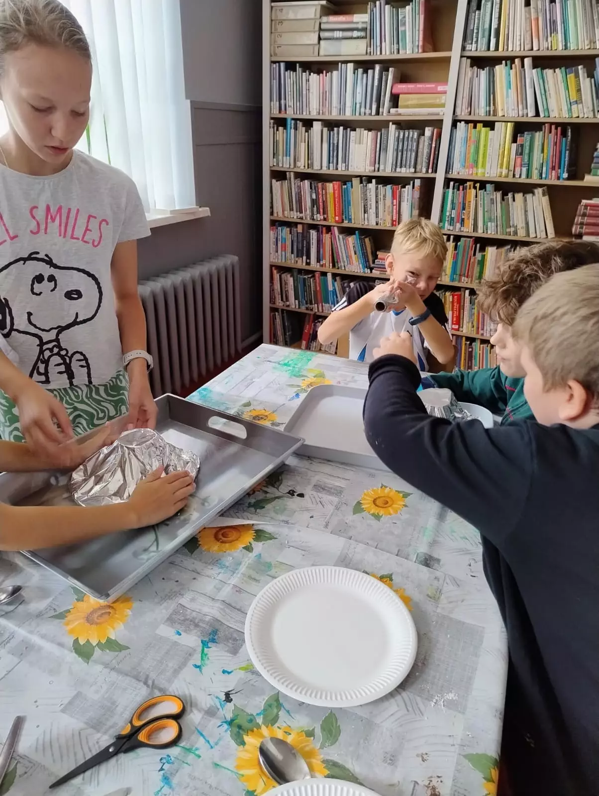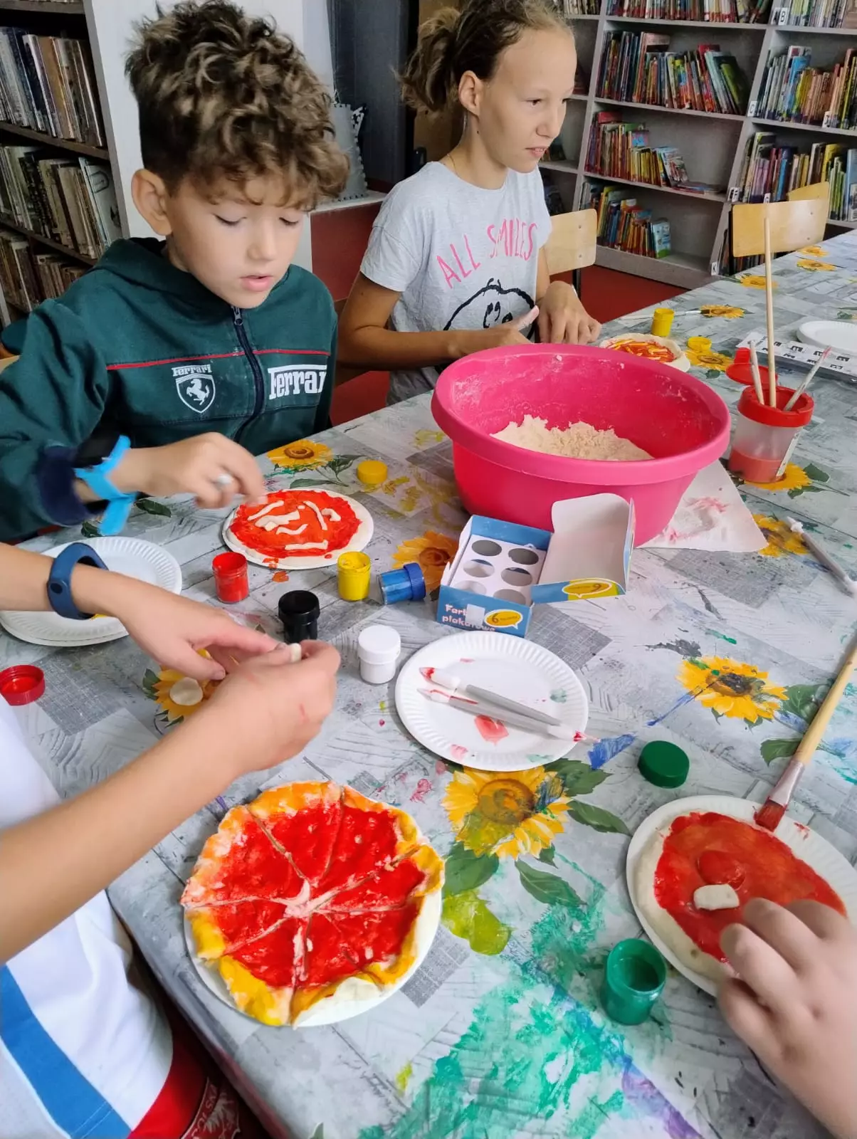 W ubiegły czwartek na wakacyjnych zajęciach literacko-plastycznych w filii w Łagiewnikach Małych podróżowaliśmy po Europie. Zatrzymaliśmy się we Włoszech, gdzie poznawaliśmy tajniki włoskiej pizzy???? oraz podziwialiśmy erupcję Wezuwiusza????. Dzieci stworzyły wulkany wybuchające kolorową lawą oraz robiły włoskie pizze - może nie do końca prawdziwe, bo z masy solnej, ale wyglądały naprawdę apetycznie. W trakcie naszej podróży czytaliśmy opowiadanie Agnieszki Stelmaszczyk pt. "Tajemnica weneckiej maski". Na zakończenie układaliśmy puzzle???? edukacyjne przedstawiające mapę Europy poznając przy tym ciekawe miejsca, zabytki i tradycje państw europejskich.